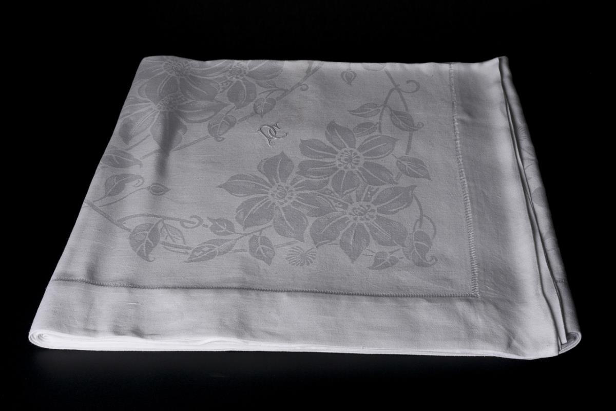 Heavy linen damask. 285 x 190 cm.