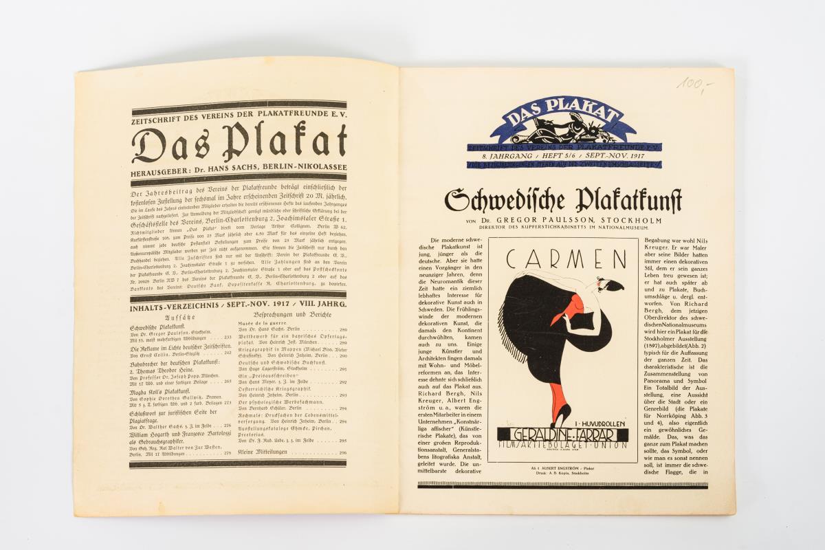 Zeitschrift des Vereins der Plakatfreunde. Einzelhefte, u.a. mit folgenden Themen: Deutsche Reklamekunst aus fünf Jahrhunderten; Schwedische Plakatkunst. .