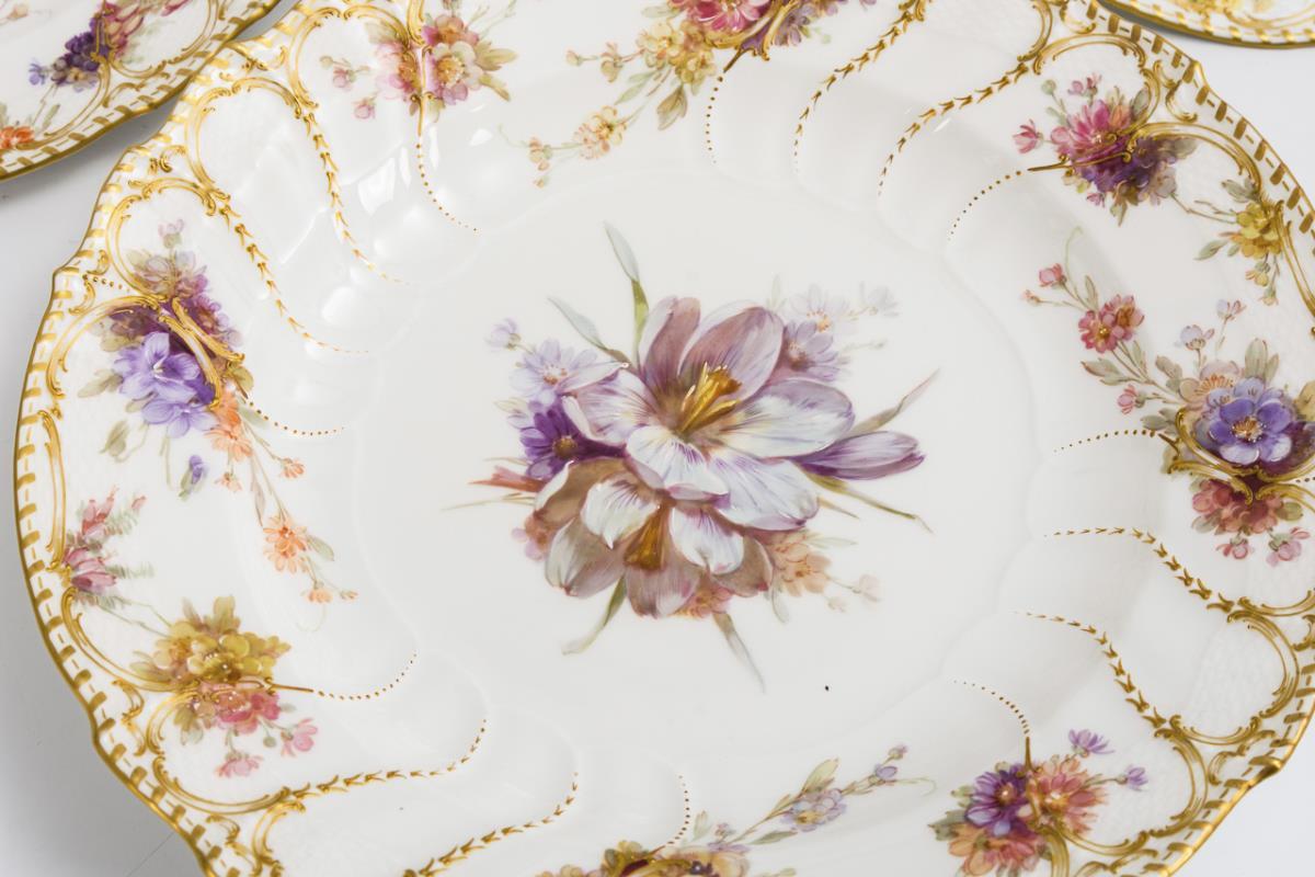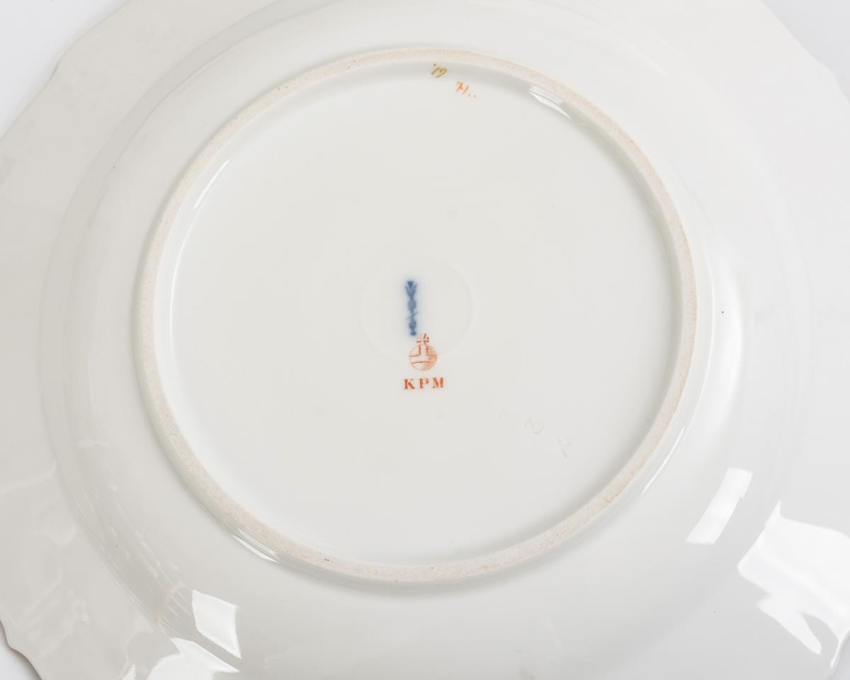 Polychrome painted, decorated in gold. Ø 24.5 cm.