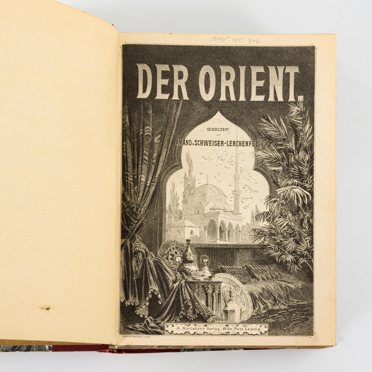 Mountkenay Jephson und H.M. Stanley: "Emin Pascha und die Meuterei in Aequatoria. Neunmonatlicher Aufenthalt und Gefangenschaft in der letzten der Sudan-Provinzen", Leipzig 1890, Brockhaus-Verlag. 402 Seiten und Karte. / Amand von Schweiger-Lerchenfeld: "Der Orient". Hartlebens Verlag. 808, 142 Seiten. / Kurt Boeck: "Indische Gletscherfahrten - Reisen und Erlebnisse im Himalaja", Stuttgart Deutsche Verlagsanstalt 1900. 470 Seiten, Klapptafel und zwei Karten.