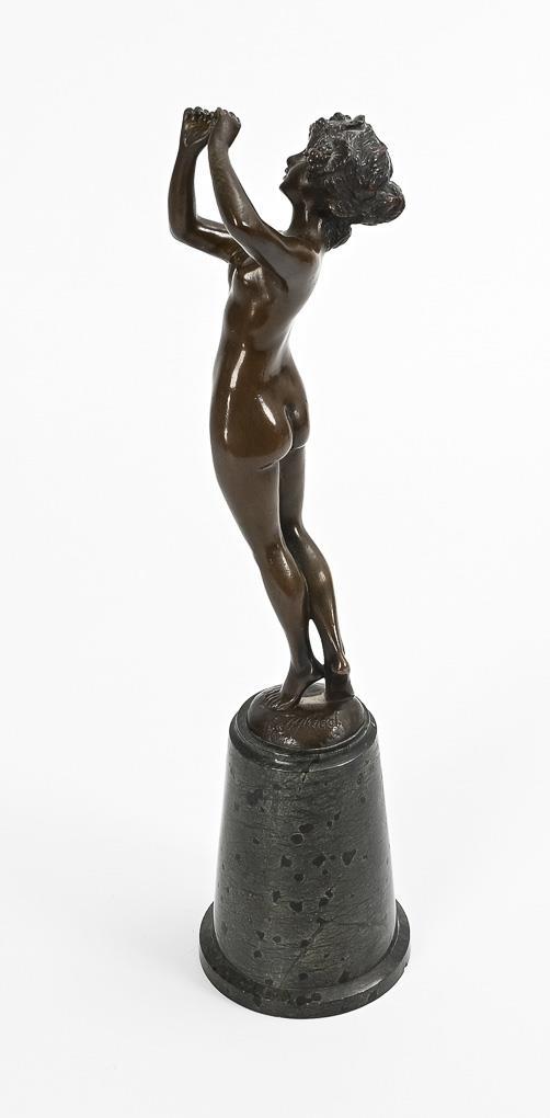Bronze patinated, high serpentine base. Marked. H 24 / 35 cm.