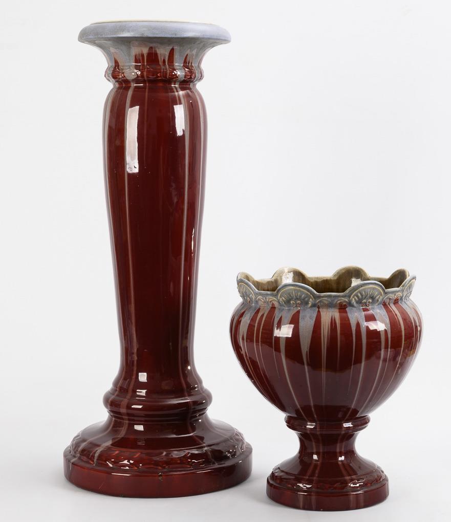 Art Nouveau cachepot on flower column.