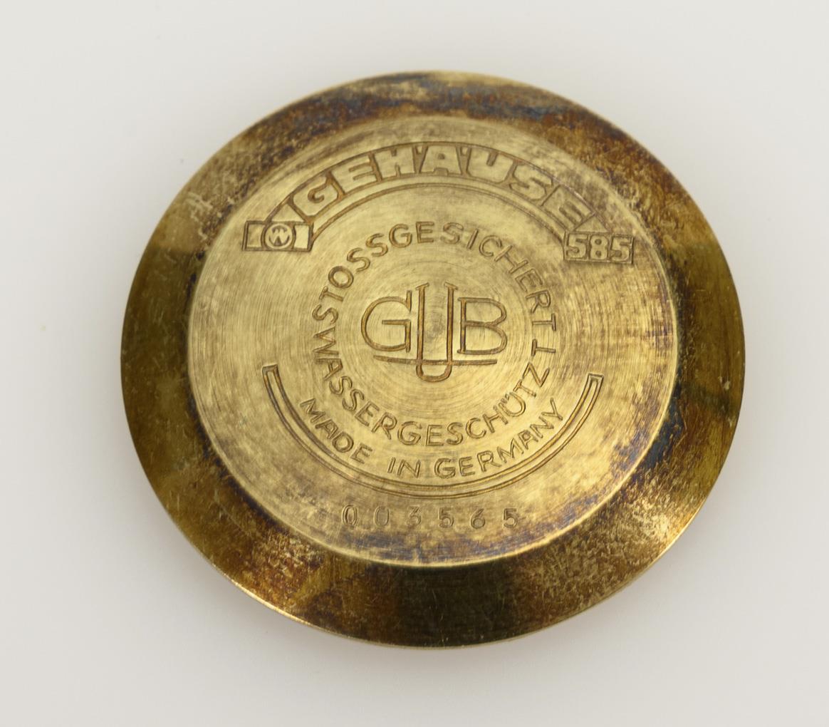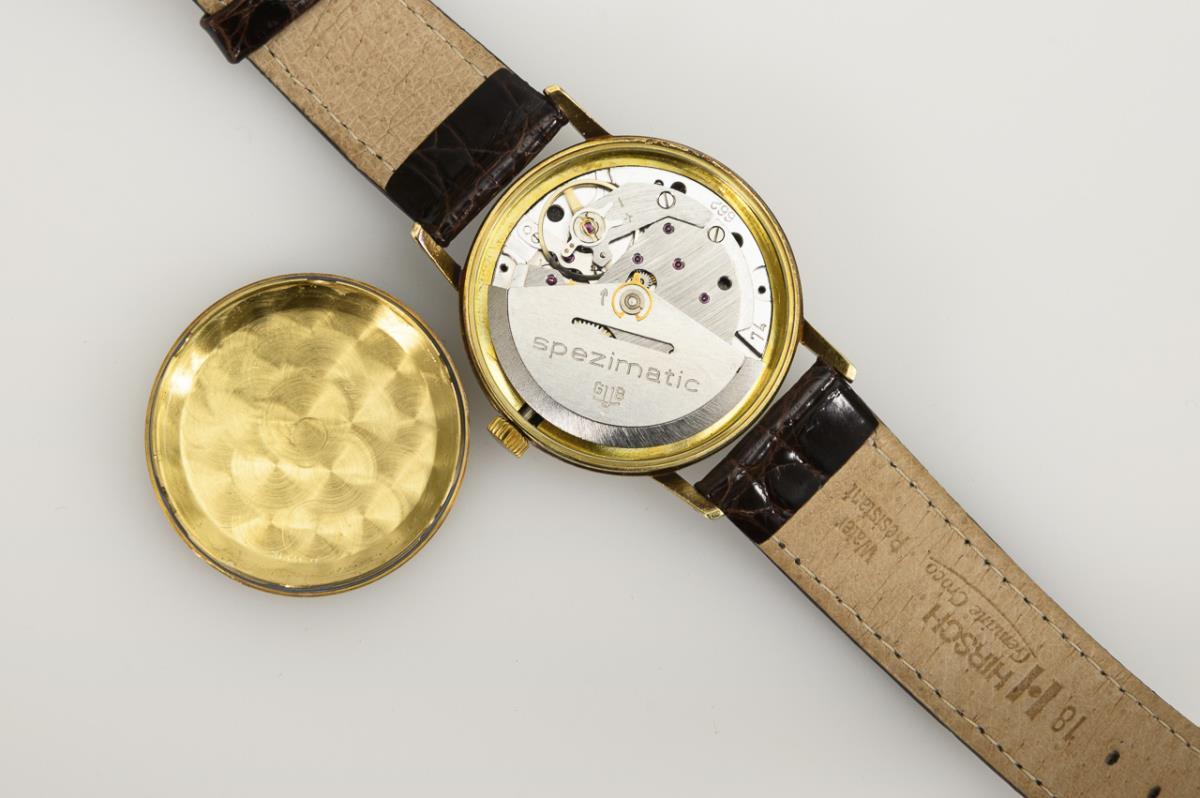 Golden wristwatch "Glashütte Spezimatic". Mark GUB / VEB GLASHÜTTER UHRENBETRIEBE.