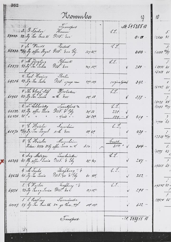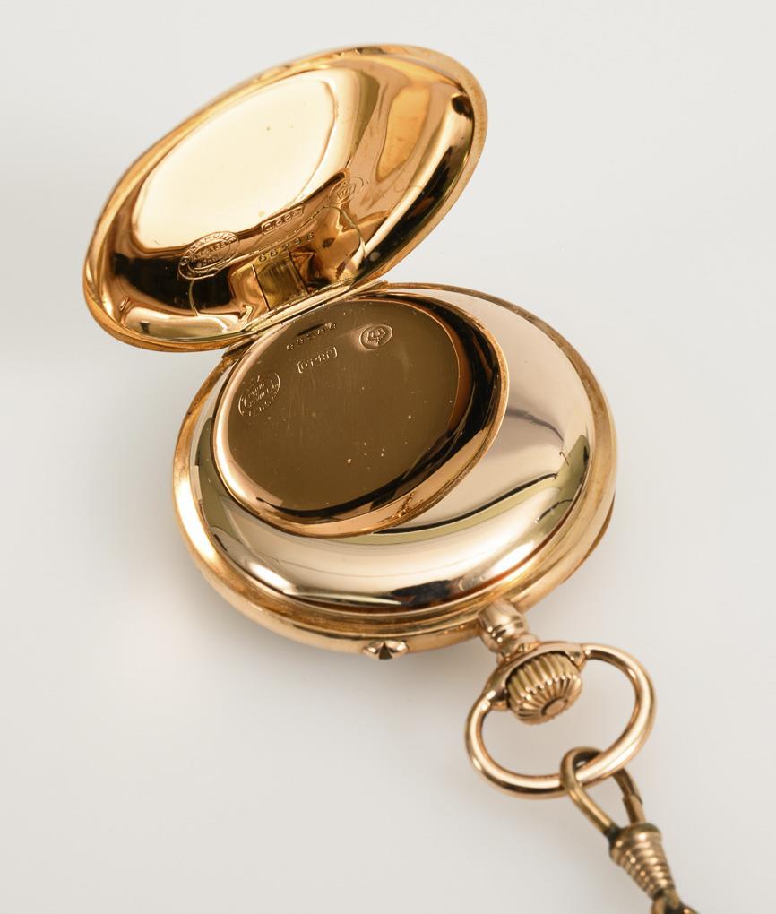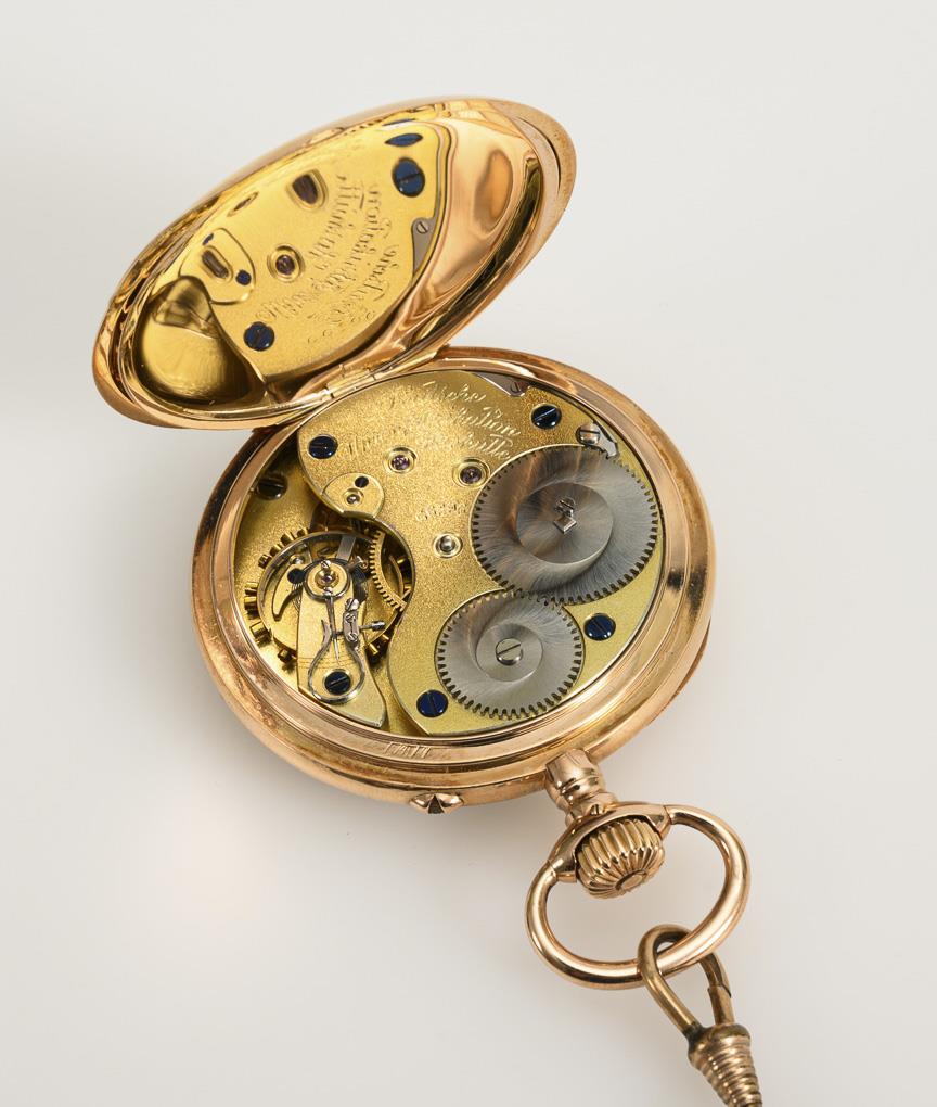 Sold to the company August Metzger, Saarbrücken on 04.11.1910. Case No. 66296, movement No. 66296.