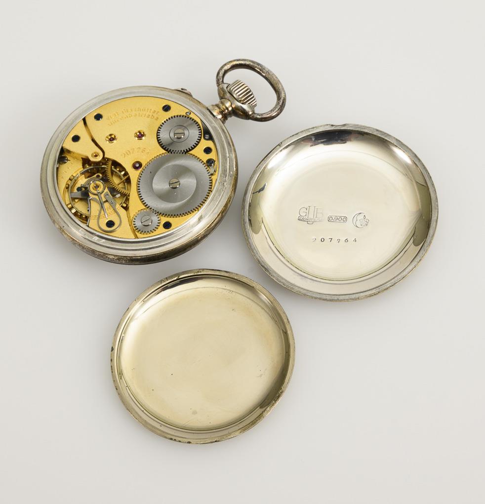 Silver observation watch in case. Mark GUB / VEB MECHANIK GLASHÜTTER UHRENBETRIEBE.