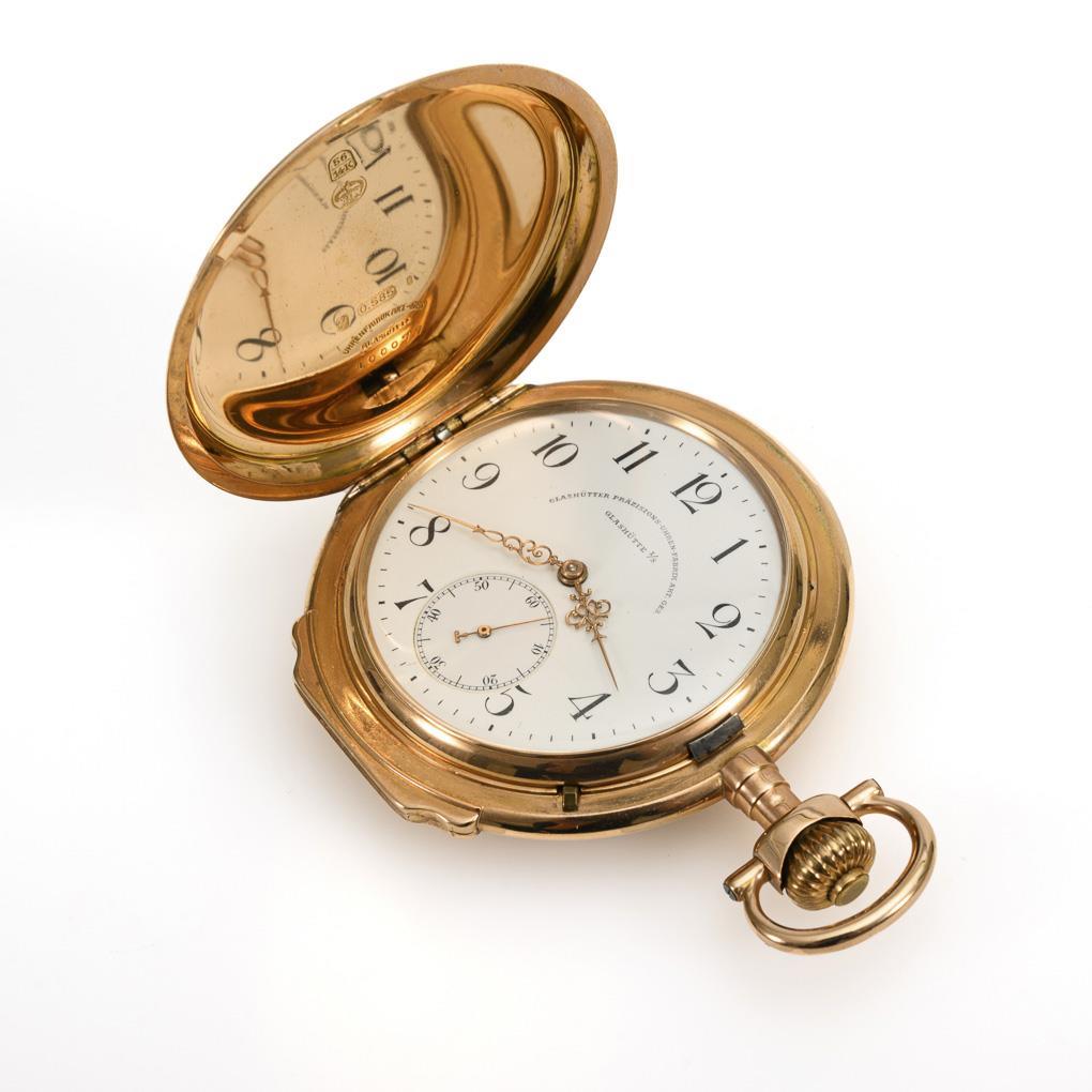 Golden Savonnette in case. LASHÜTTER PRÄZISIONSUHREN-FABRIK AKTIENGESELLSCHAFT.