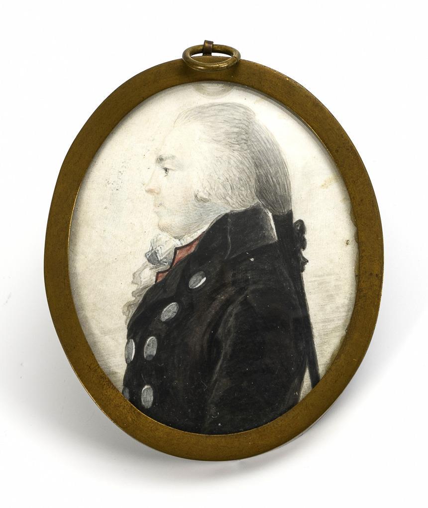 Pencil and ink or gouache. Brass strip and ebonized wooden frame: each with glazing. 7.5 x 6.5 cm and 7 x 5.5 cm respectively, frame maximum 13.5 x 11.5 cm.