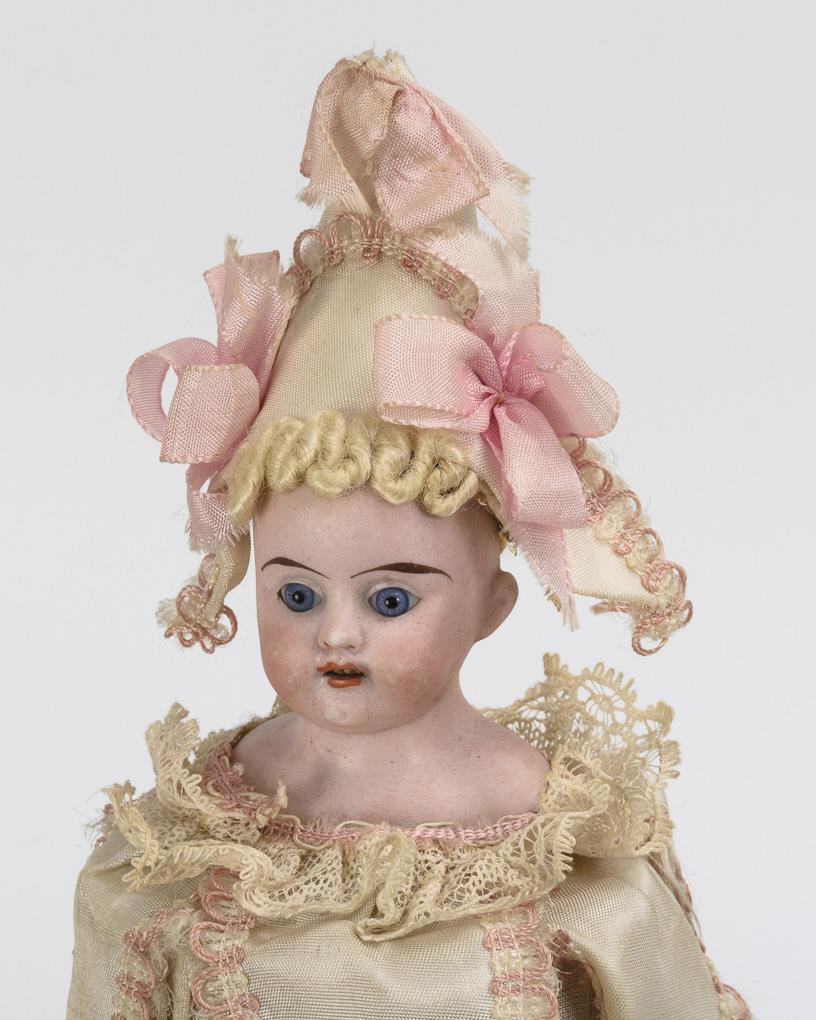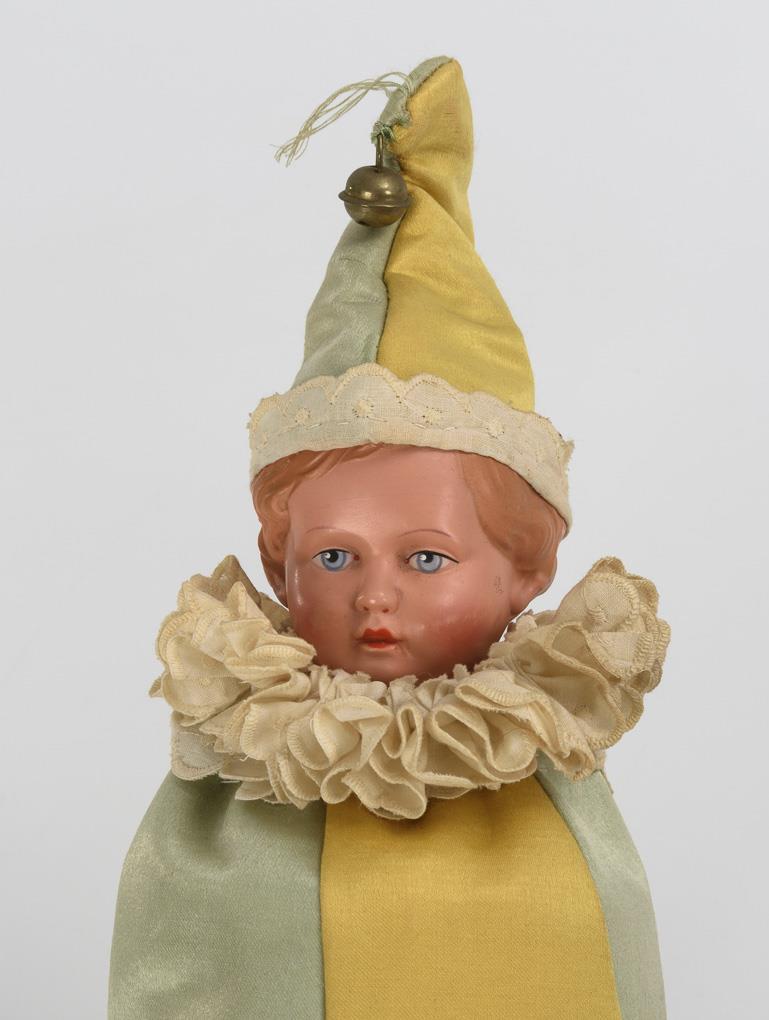 Celluloid, bisque porcelain, fabric, cardboard, wood. L 38/40 cm.