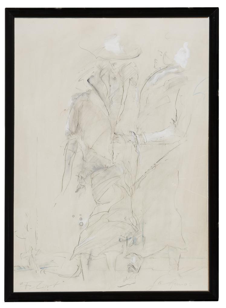 Inscribed. The best part of the drawing lies in the form, in the idea, in the grasp of the situation with an astonishing wealth of painterly nuances. Glazed blackened removable frame.