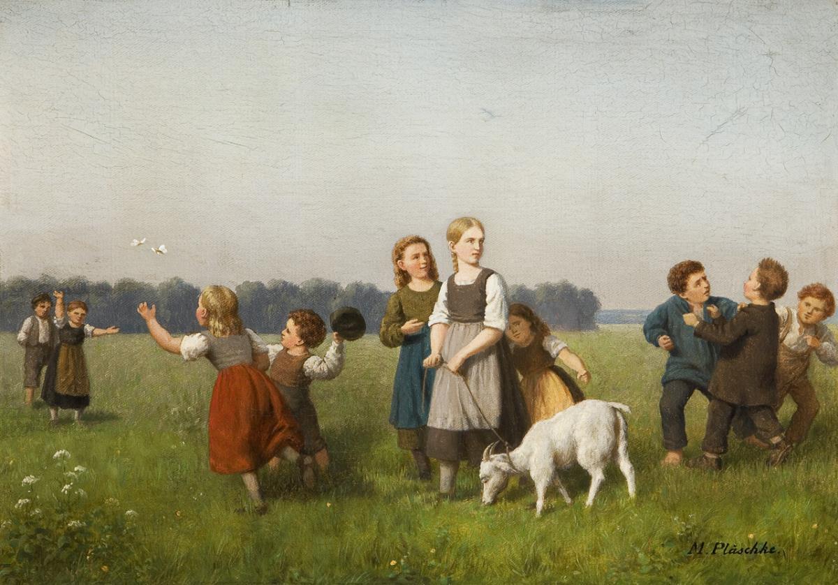 Pläschke, genre and landscape painter, studied at the academy in Düsseldorf. Pupil of Theodor Hildebrandt. Founding member of the Malkasten artists' association in 1848. Regularly represented at various European exhibitions * Partner auction Bergmann.