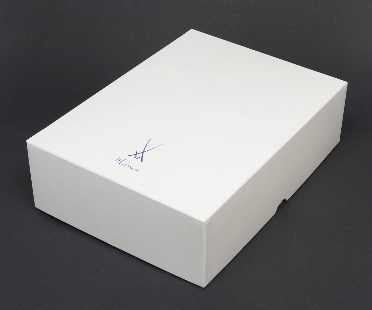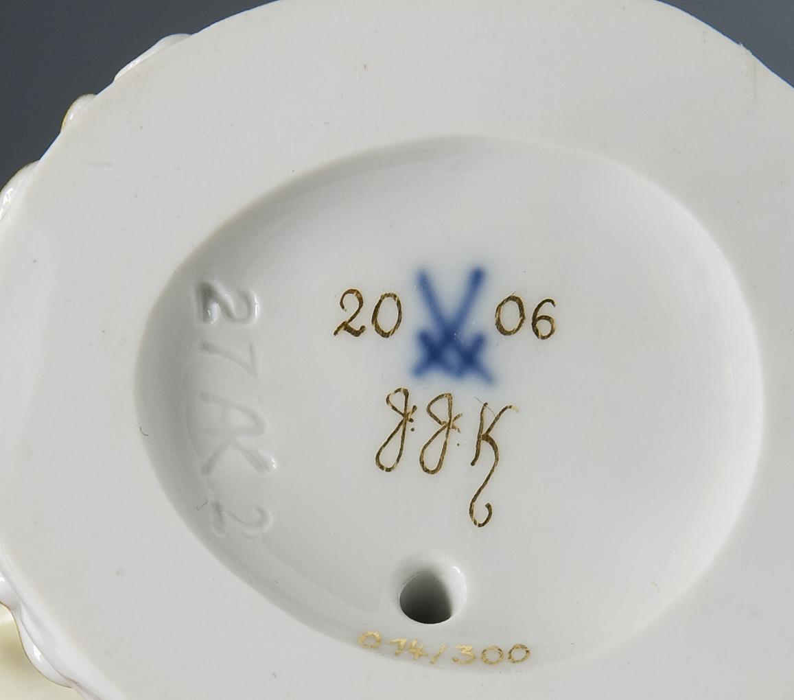 Model by Silke Ebermann 2005, modeled after Johann Joachim Kaendler. Limited, numbered: 014/300, painted in color, painted gold. Sword mark, press mark, gold signet. With certificate and special print from Keramos by Hans Sonntag, in original box.