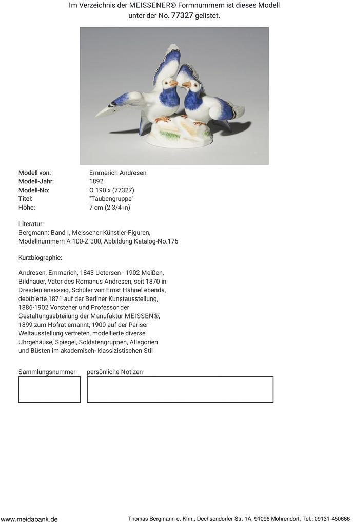 Andresen, sculptor, 1886-1902 head and professor of the design department of the Meissen porcelain manufactory. Meissen manufactory price: 1690,- Euro * Partner auction Bergmann.