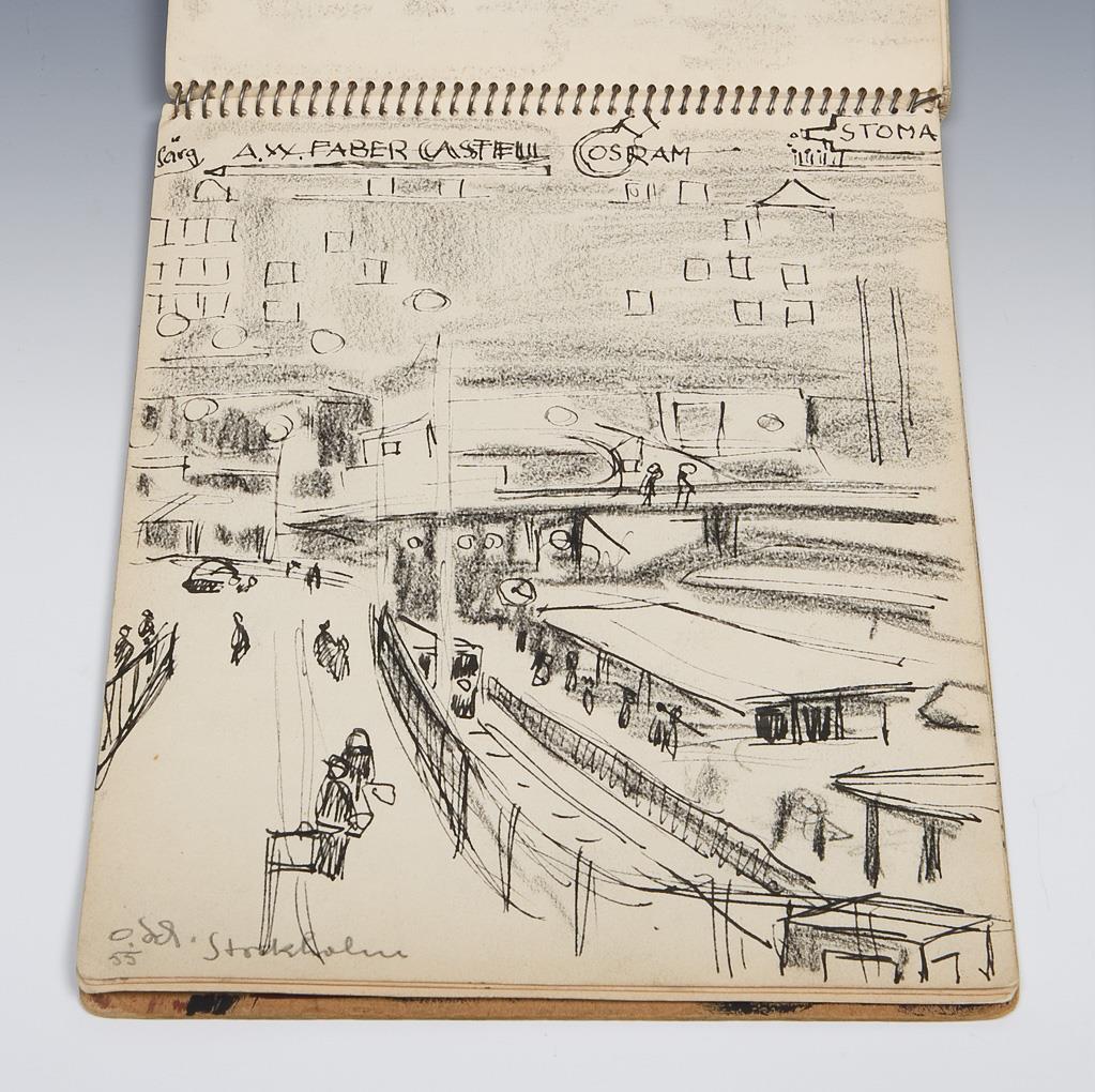 City views of Stockholm, portraits, a church interior. 18 pages, mostly signed or monogrammed, dated: (19)55, inscribed. Front cover missing.
