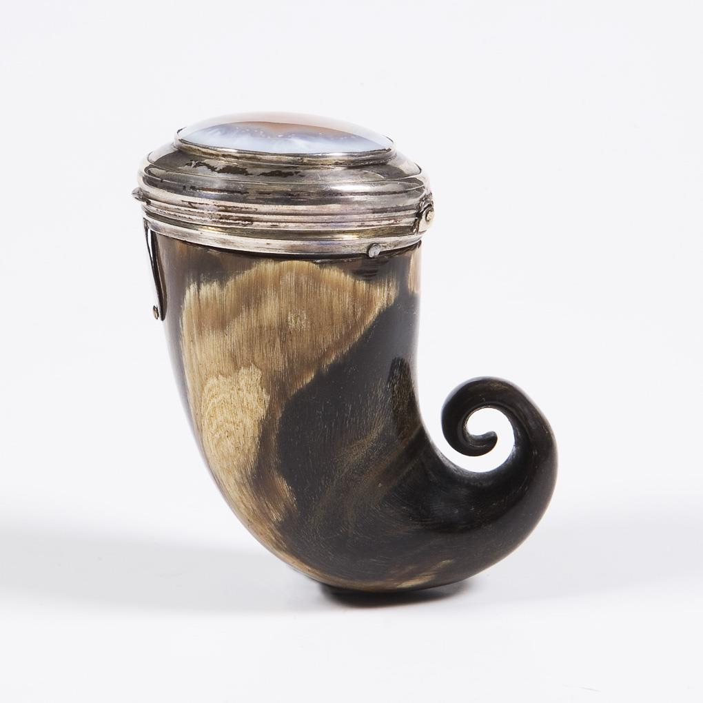 Horn tabatiere with silver mount.