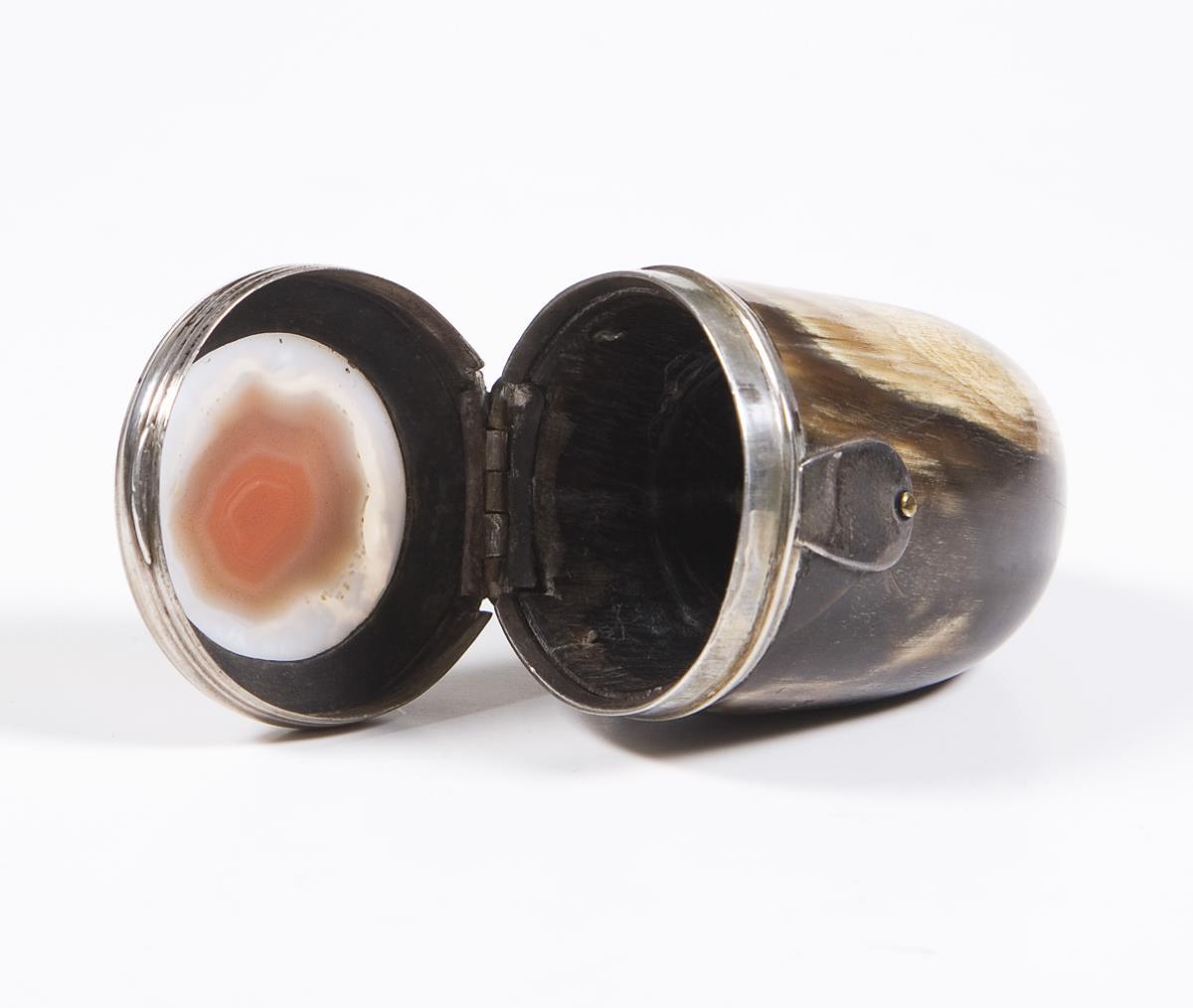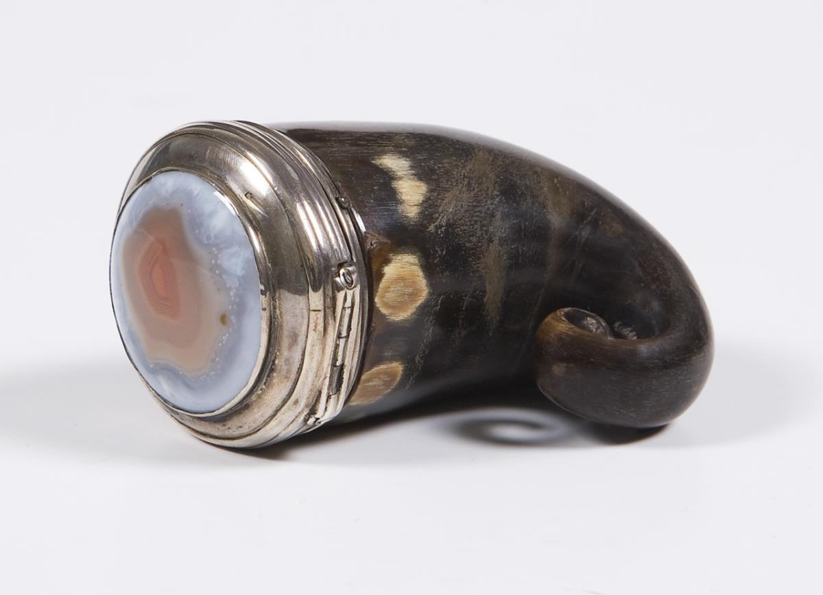 Horn tabatiere with silver mount.