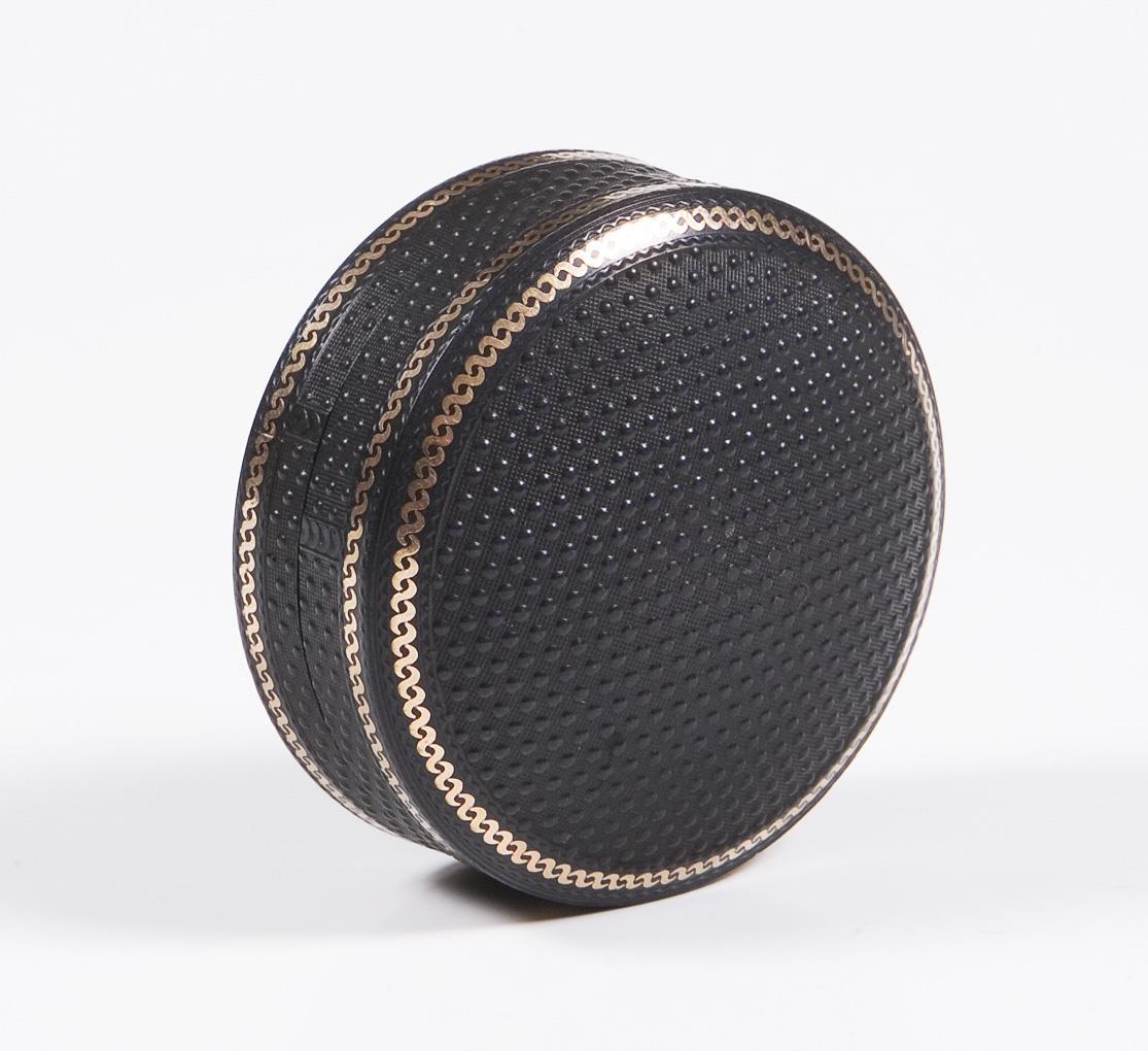 Papier-mâché, blackened. ø 6 cm, height: 4 cm.