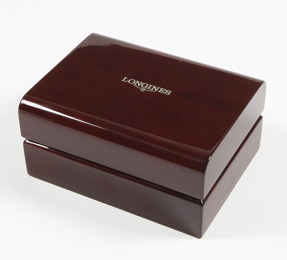 Automatic movement, caliber L 698.2, water-resistant. Case with glazed back, silver dial, blued steel hands, retrograde display (by recessed hands) of small seconds, day of the week, date and time in a second time zone. Original crocodile leather strap with stainless steel double folding clasp. Original box, cardboard box, booklet manual with warranty card and operating instructions. Functioning in the short time test.