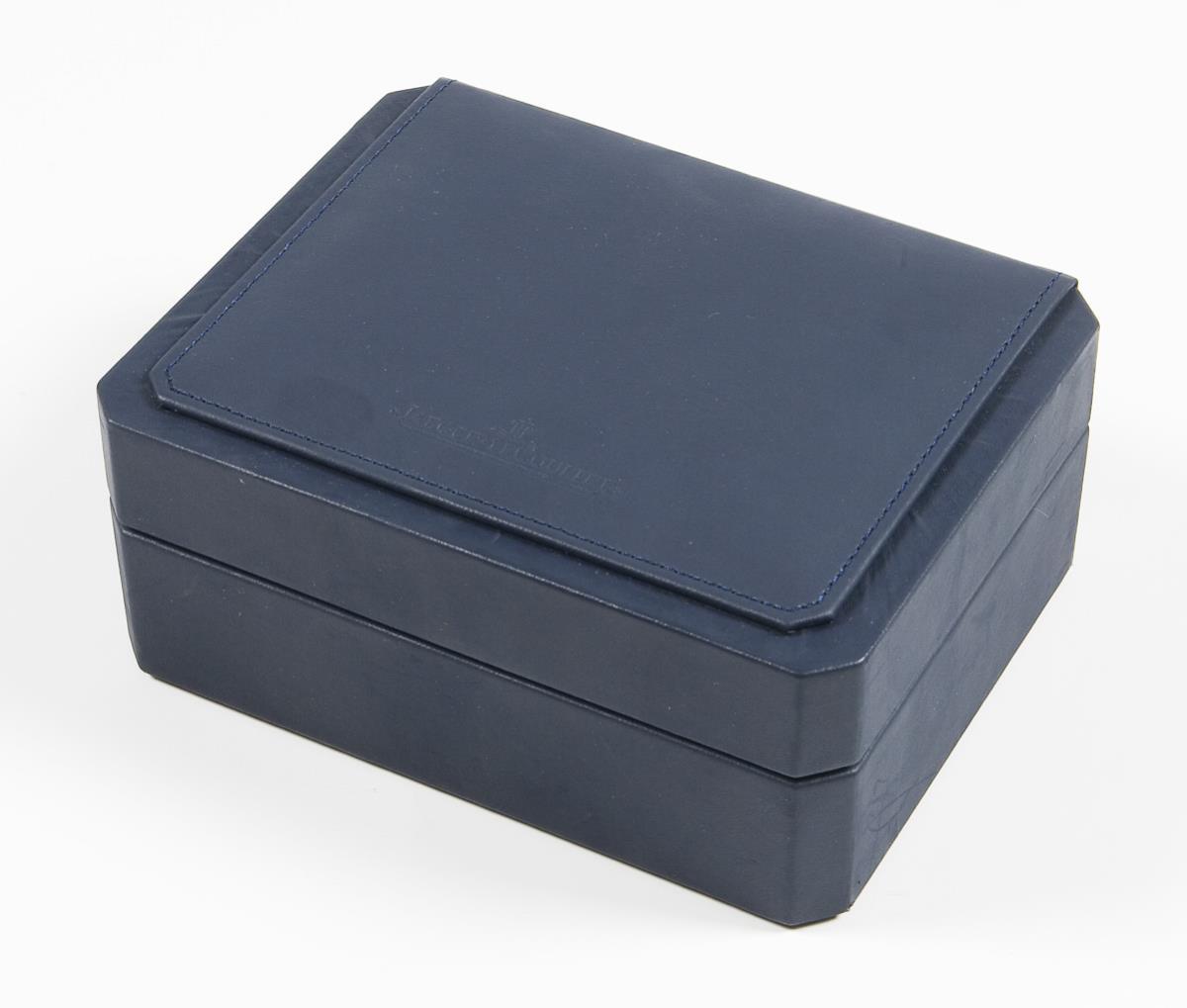 Manually wound, caliber 829, power reserve 44 hours, water-resistant to 50 meters. Dial with applied markings, date window, large seconds, chronograph rate display, luminous hands. Seconds counter on the back, retrograde minute counter. Original bracelet with butterfly folding clasp. Original box, cardboard box, guarantee booklet, manual with operating instructions. Functioning in the short time test.