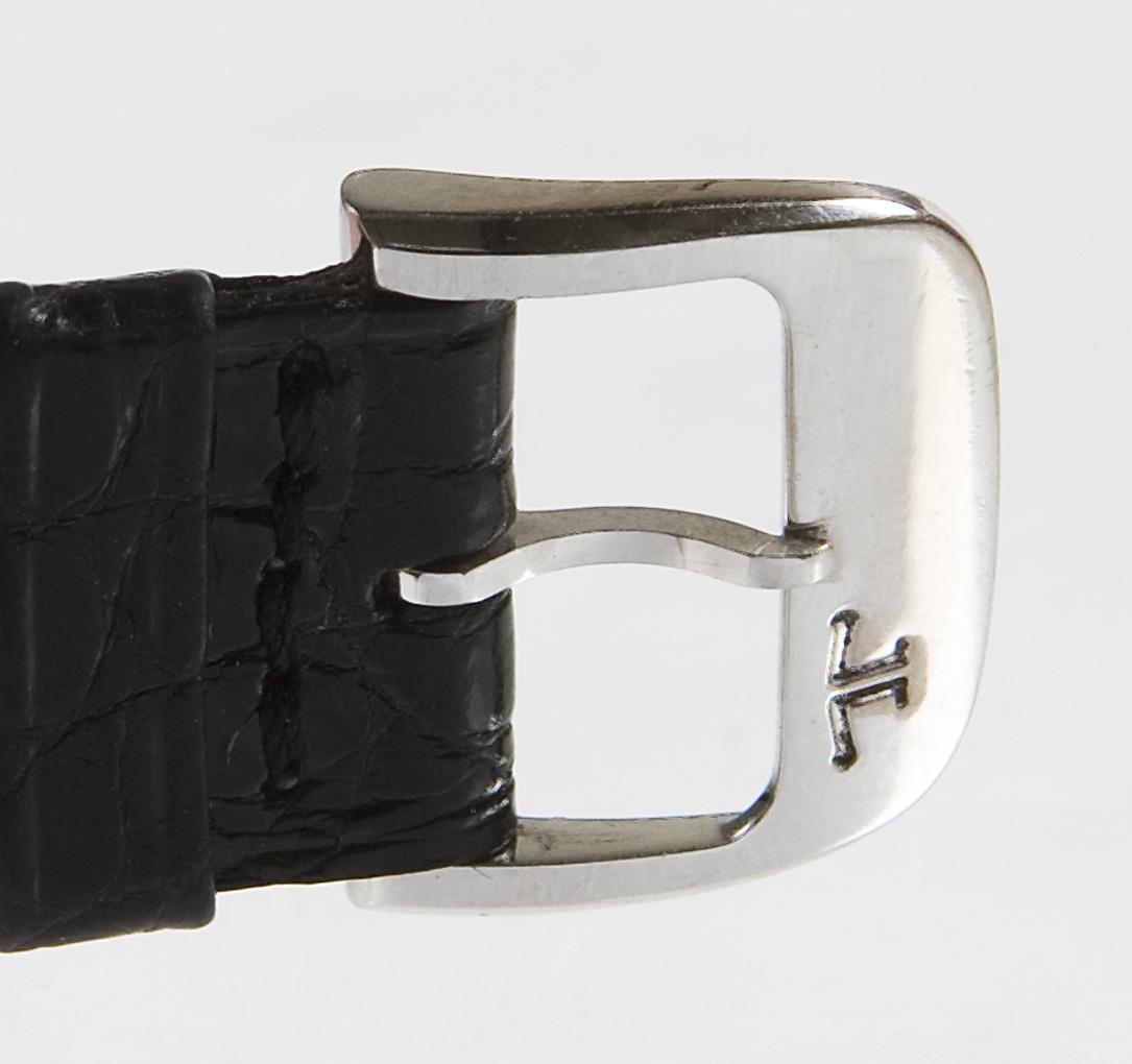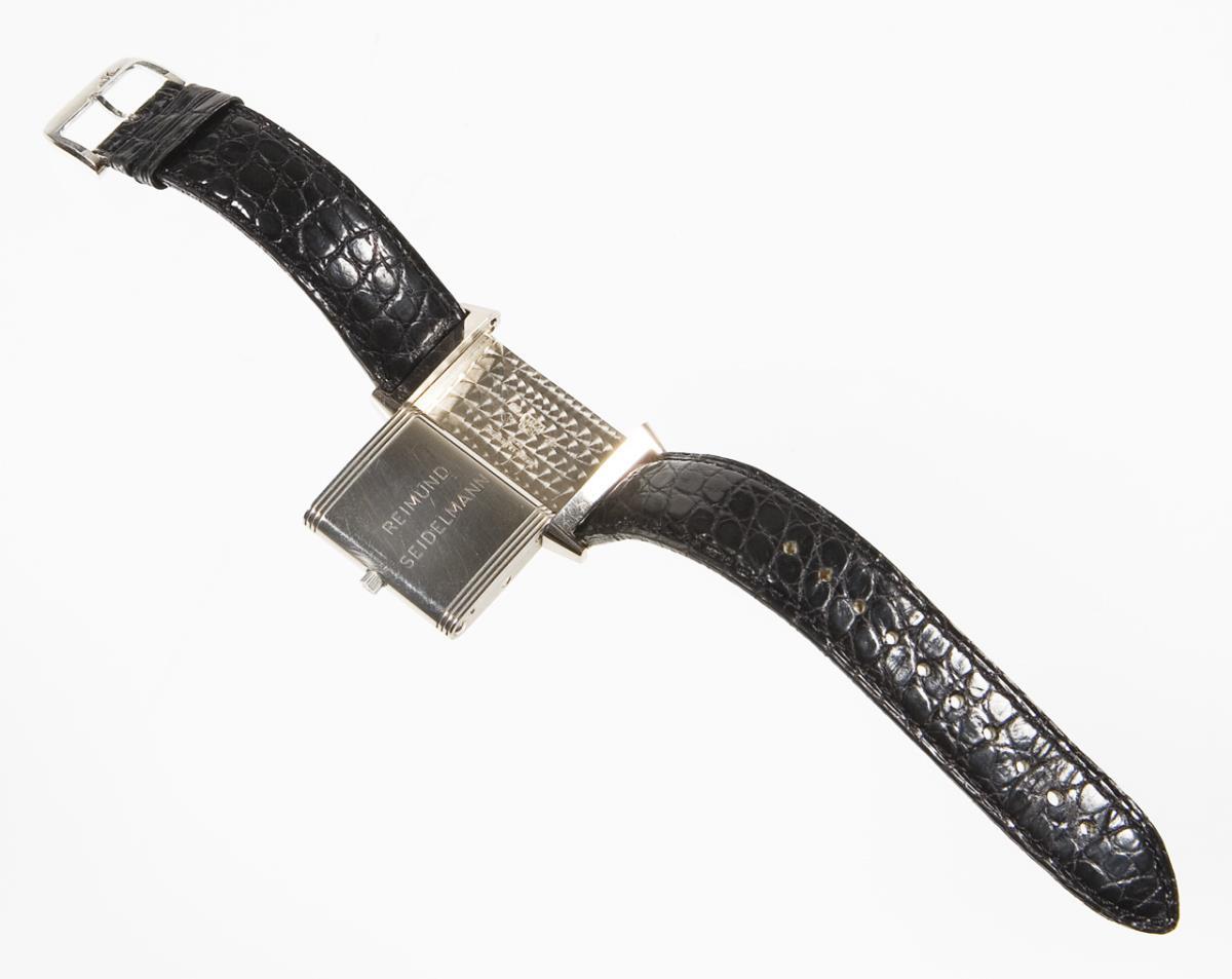 Manually wound, caliber 846, power reserve 42 hours. Engraved name on the back: Reimund Seidelmann. Copper-colored dial with applied markings. Original crocodile leather strap with 750 white gold pin buckle. Original box, cardboard box, Certificat de Garantie, brochure with operating instructions. Functioning in the short time test.