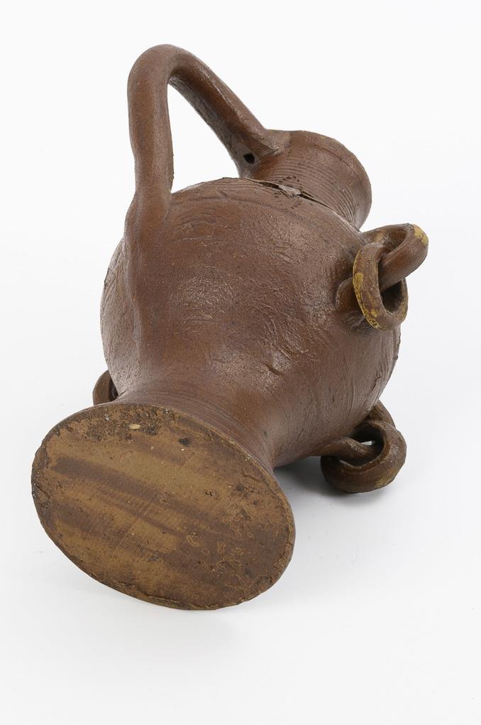 Salt-glazed stoneware, dark brown engobed. H 16.5 cm.