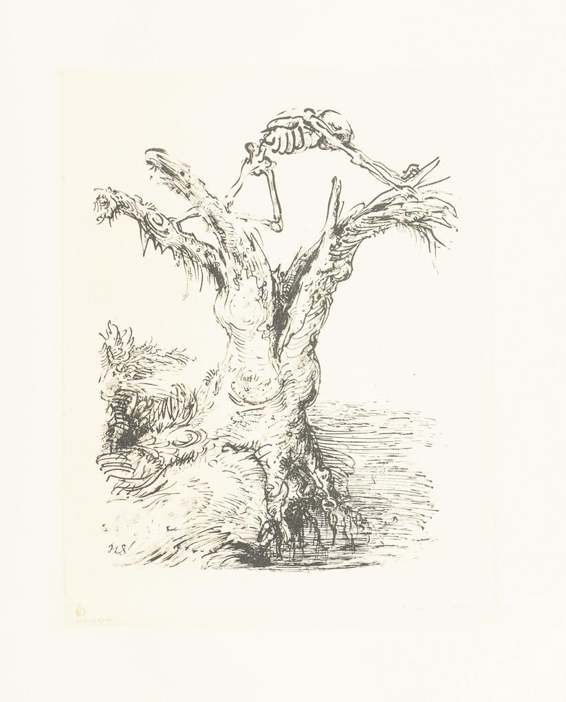 Also "Der morsche Baum" - Symbolbild des memento mori; after a drawing from 1943. Some creasing.