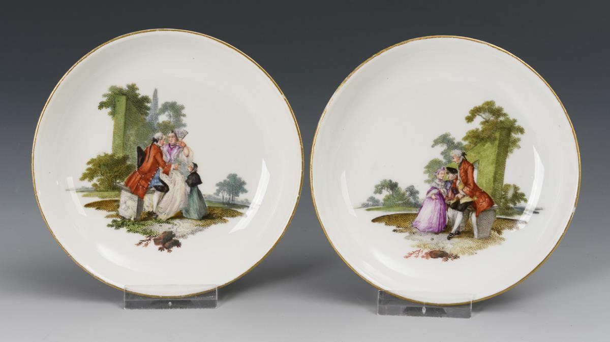 15 baroque porcelains with Watteau painting. Meissen.