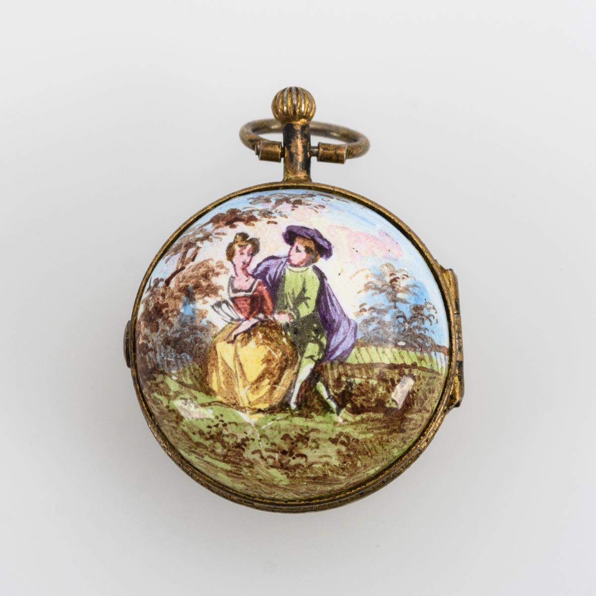 Emailmalerei wohl auf Kupfer, Metallmontierung.