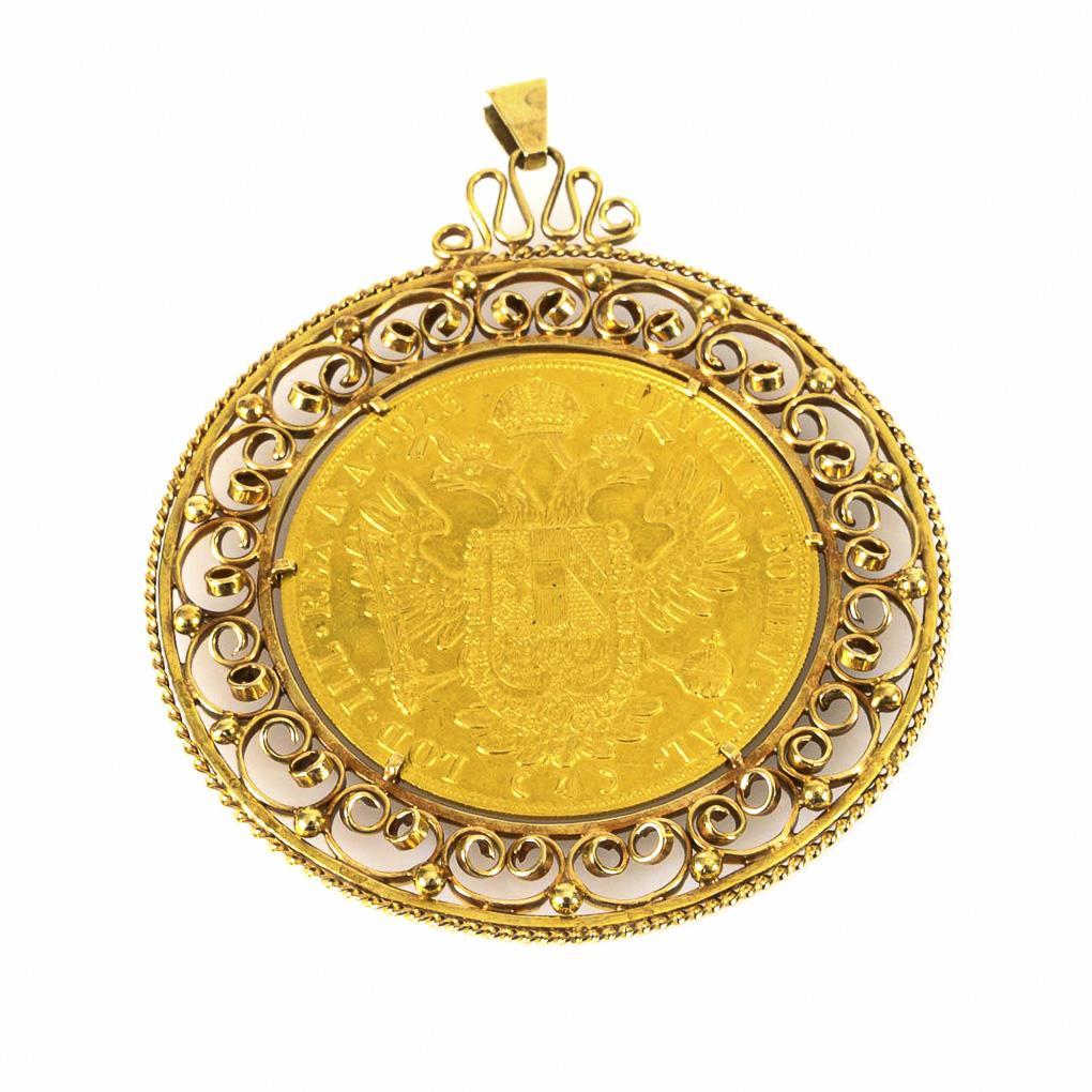 Large coin pendant 4 ducats Austria, in filigree frame.
