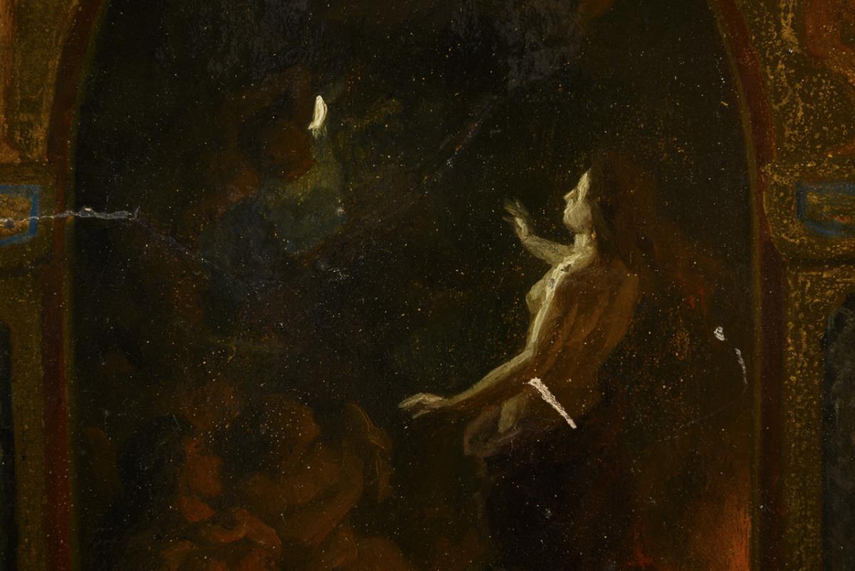 Oil/paper/hard fiber. Unsigned. Probably late 19th century