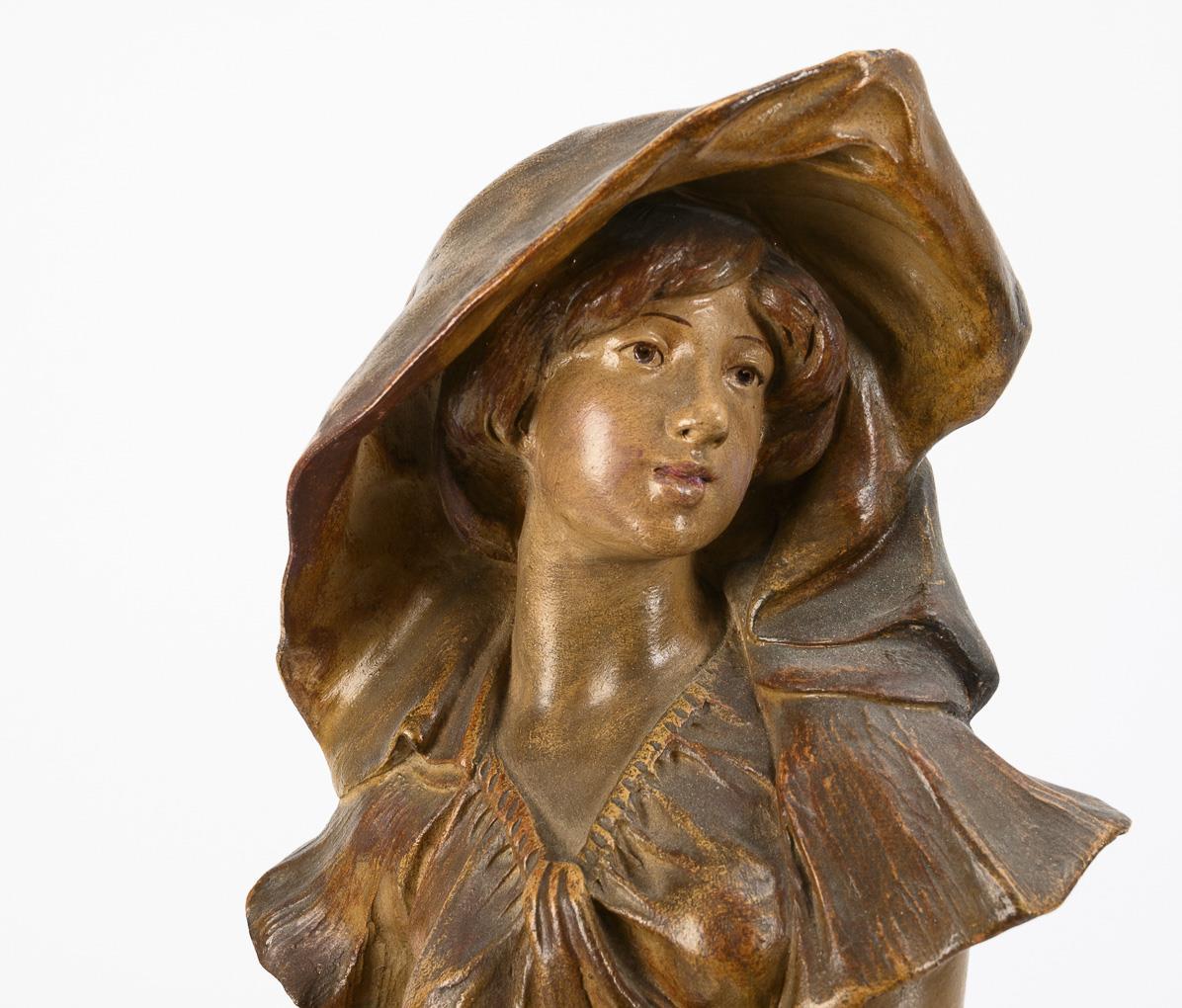 Large Art Nouveau girl figure. Fontaine & Durieux, Paris.