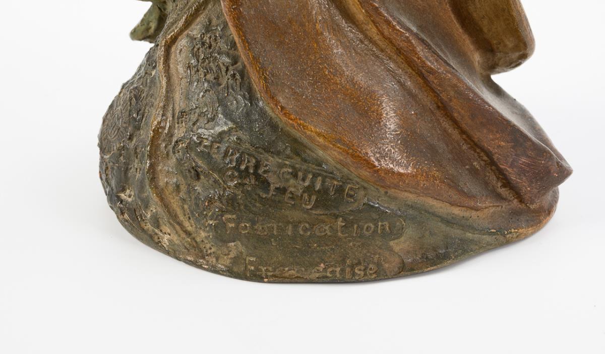Embossing stamp/founder's mark with the addition "Terre cuite G[ran]d Feu" and "Fabrication Francaise". Circa 1900.