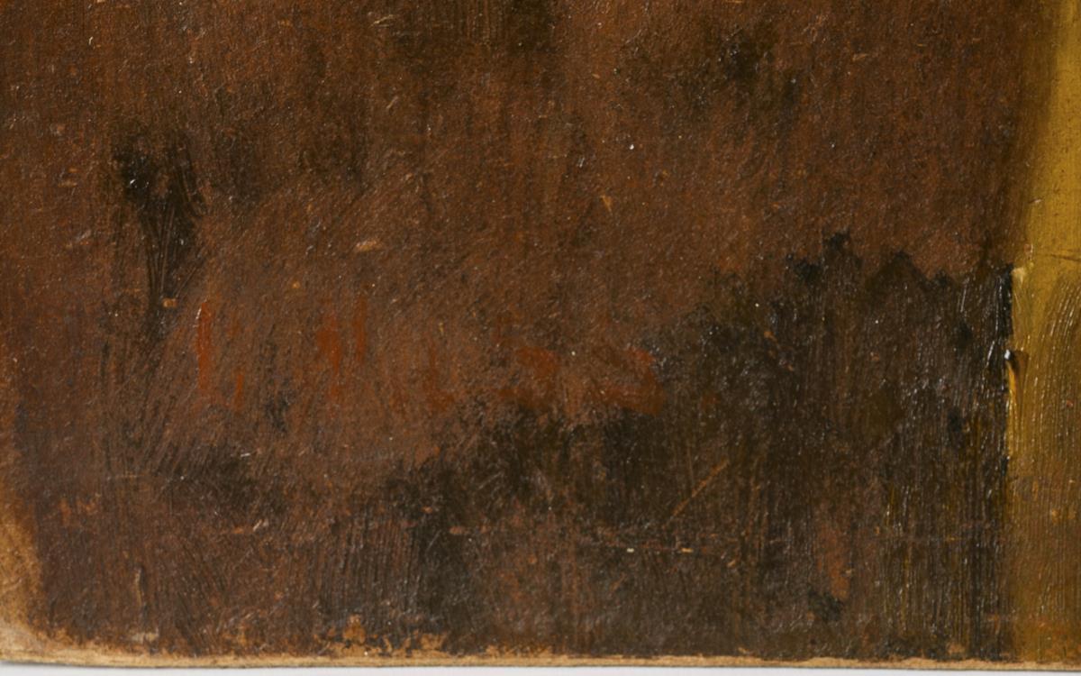 Oil/painting card. Indistinctly monogrammed lower left. (19)55.
