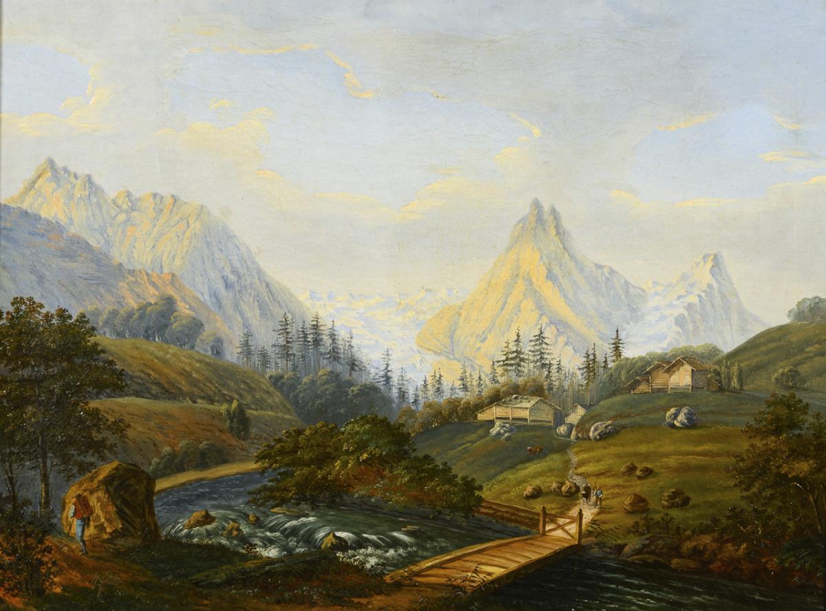 Landscape painter 19th century: Two mountain landscapes with staffage