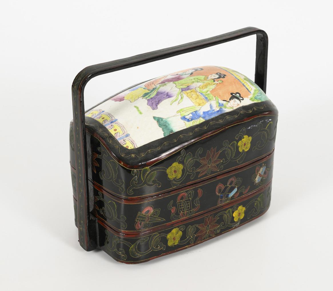 Black lacquer and porcelain. 25 x 18 x 30 cm.