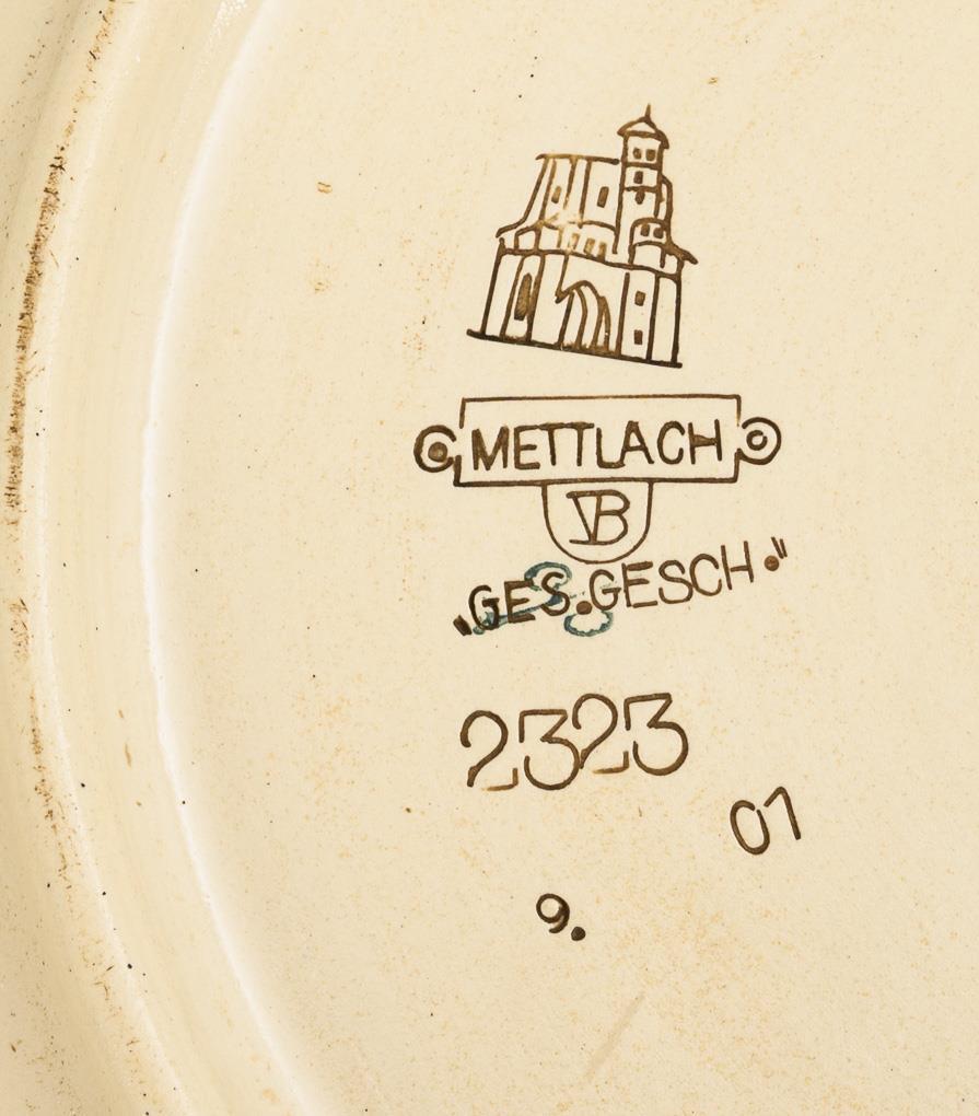 Embossed tower mark "Mettlach" with the addition "Ges. Gesch.", from 1887. model no. 2323.