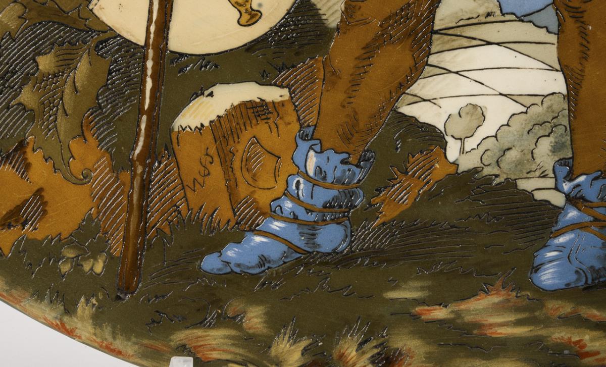 Pair of chromolite wall plates with lansquenets. Villeroy & Boch.