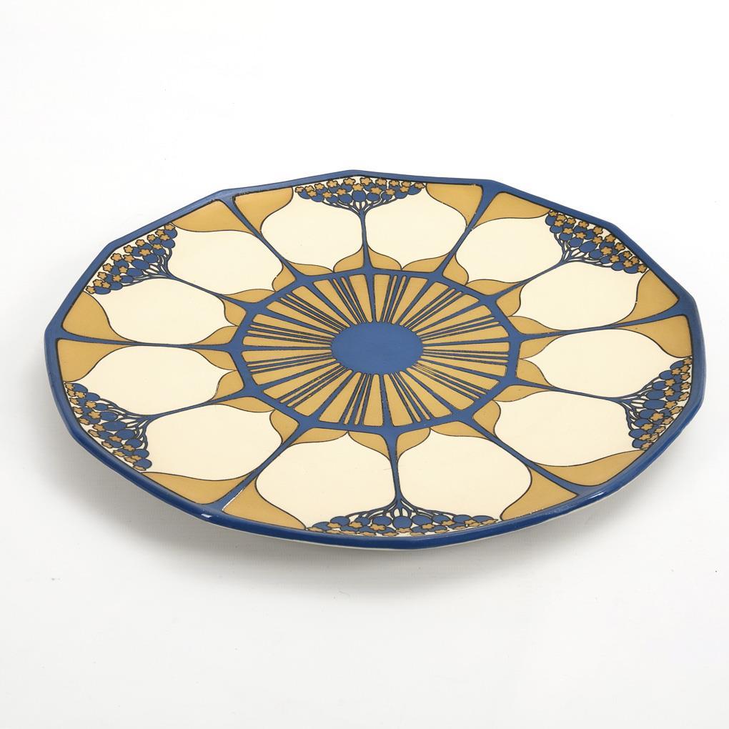 12-sided plate with partially segmented floral decoration typical of the style. Surface finely cracked due to production.