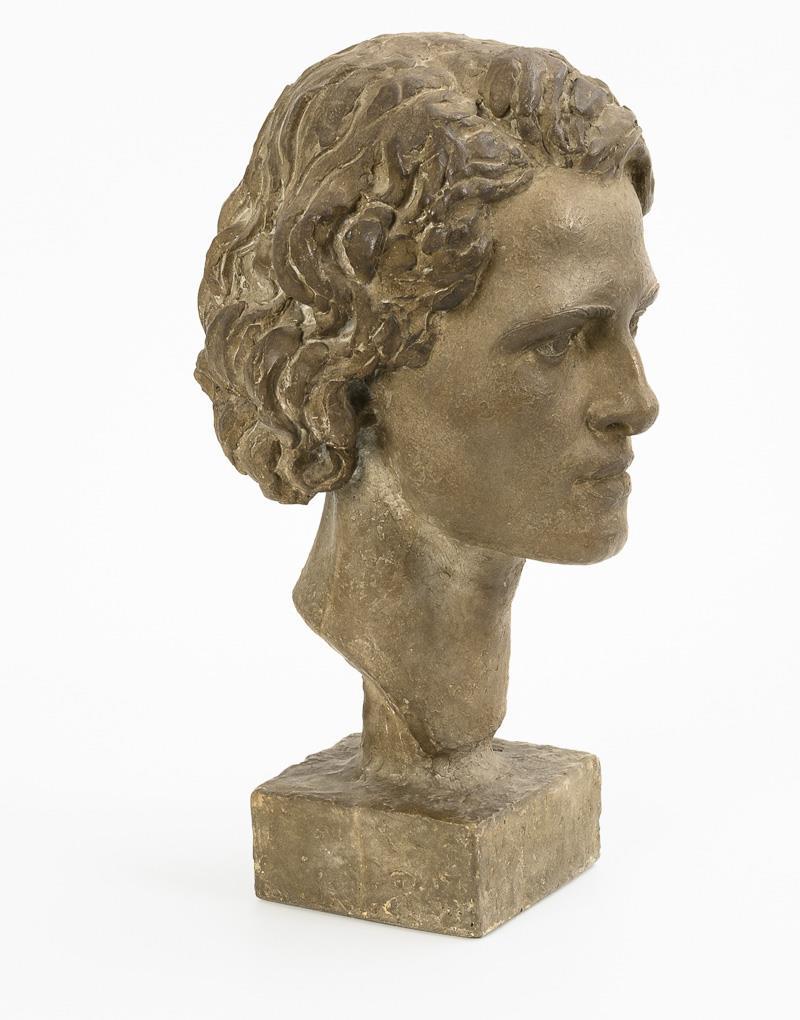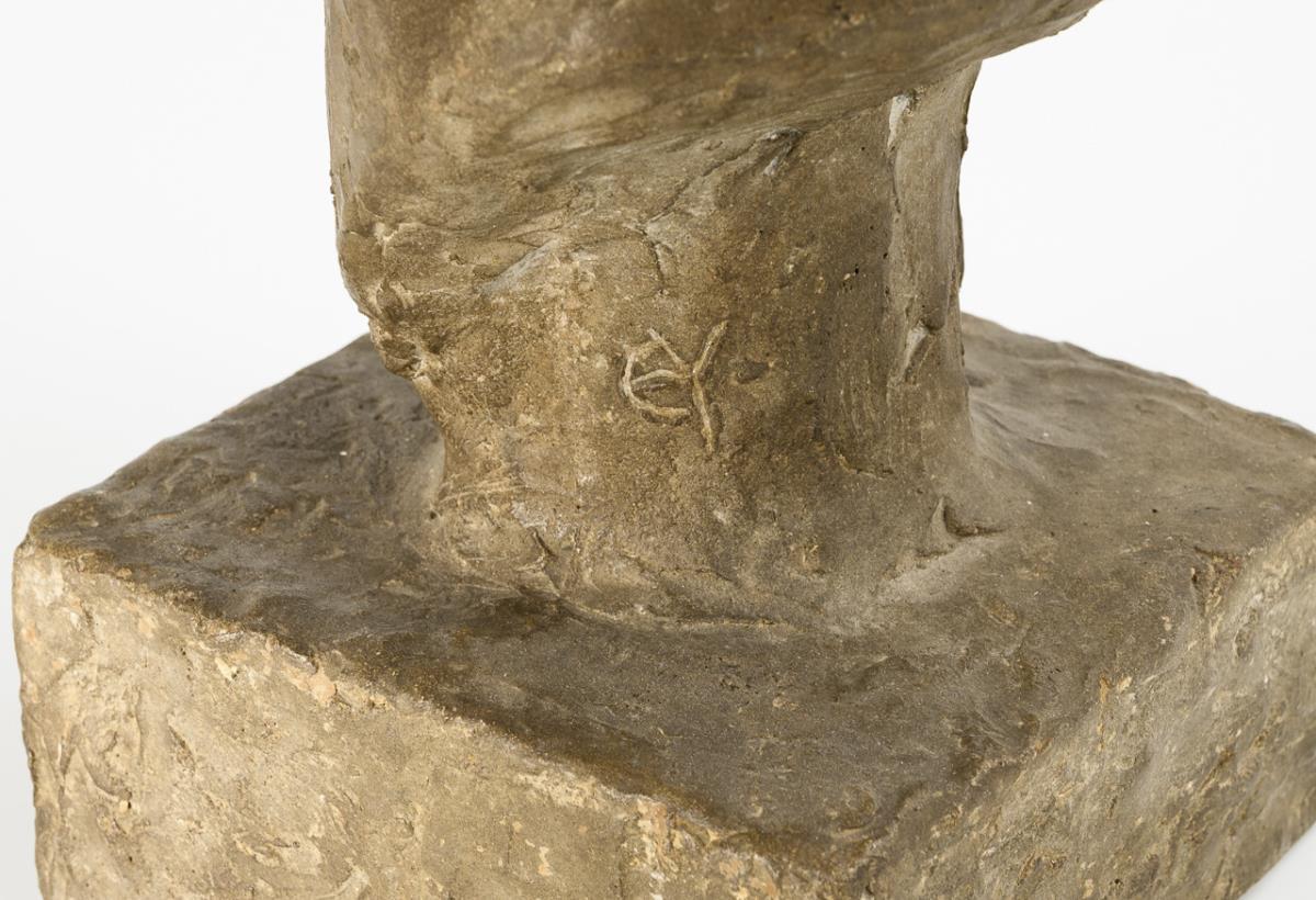 Cast stone, surface probably waxed. Inscribed with the monogram "EY". H 45 cm. 18.0 kg.