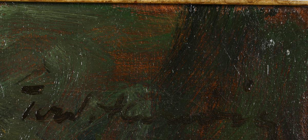 Oil/canvas. Faintly signed upper right and lower center, titled verso.