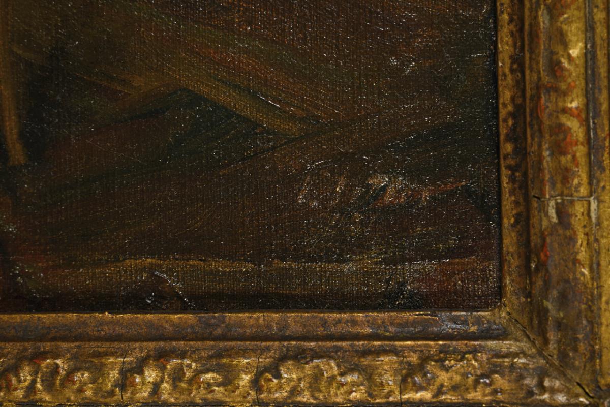 61 x 50.5 cm. Framed : 77.5 x 68 cm (gold stucco frame).