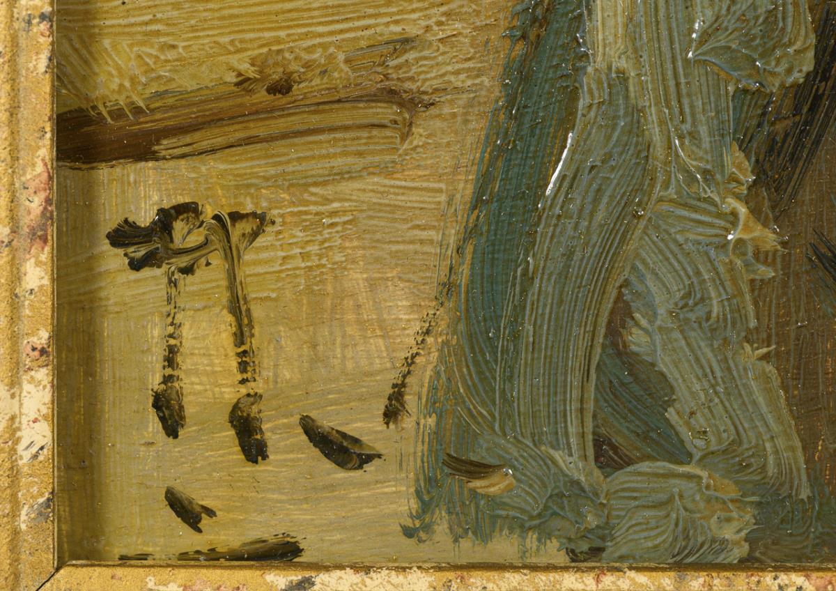 30 x 40 cm. Framed : 46 x 56 cm (gold stucco frame).