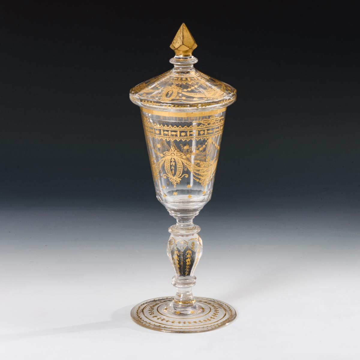 Facettiertes Glas mit konischer Kuppa, Knaufdeckel, Balusterschaft und