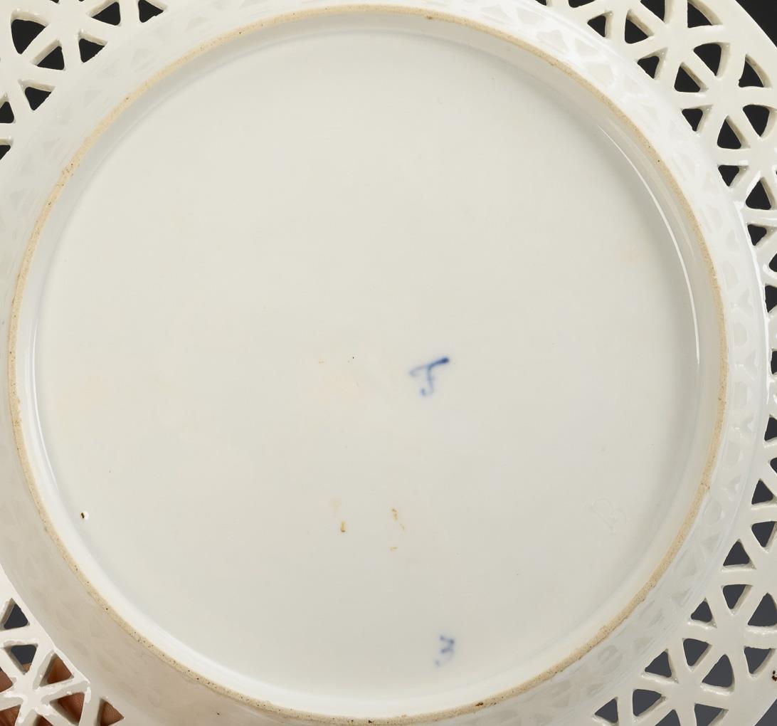 Plate with an openwork flag of intersecting circles, in the mirror the classicist depiction of an urn with leaf tendrils. Minimal gold abrasion.