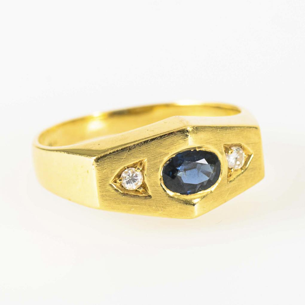 Marked 750 yellow gold. Brilliant-cut diamonds totaling ca. 0.03 ct. Ring size 60. 6.5 g.