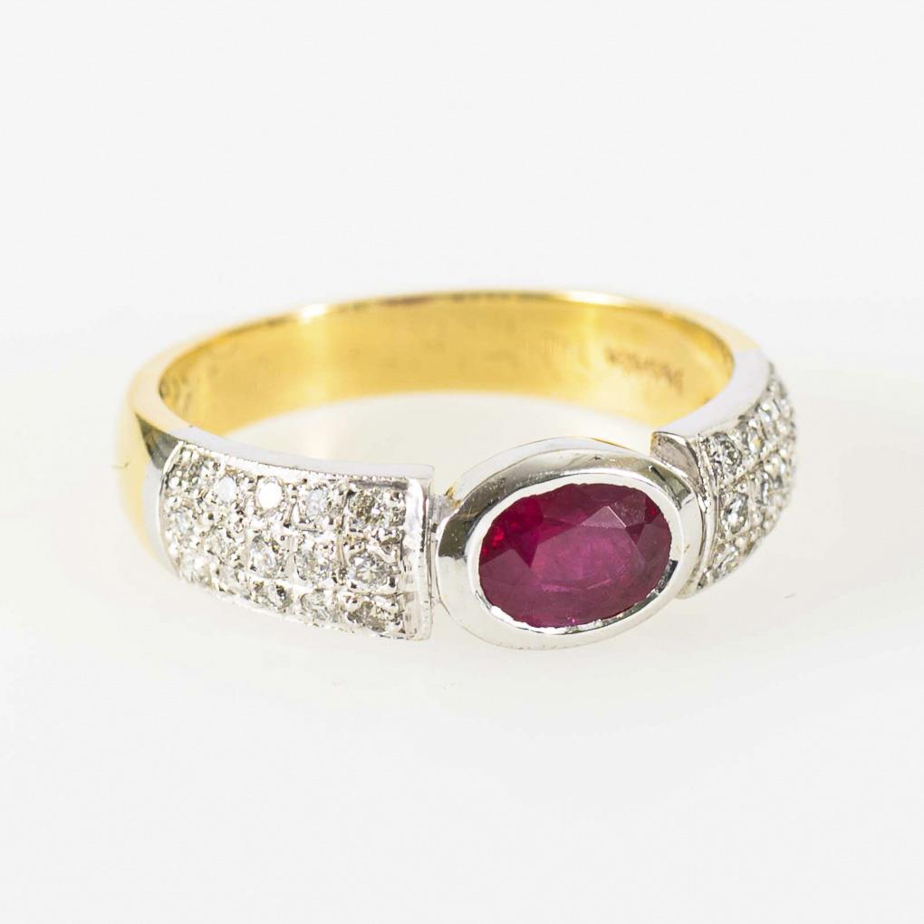 Bezel-set ruby and 30 pavé-set brilliant-cut diamonds in a central bar.