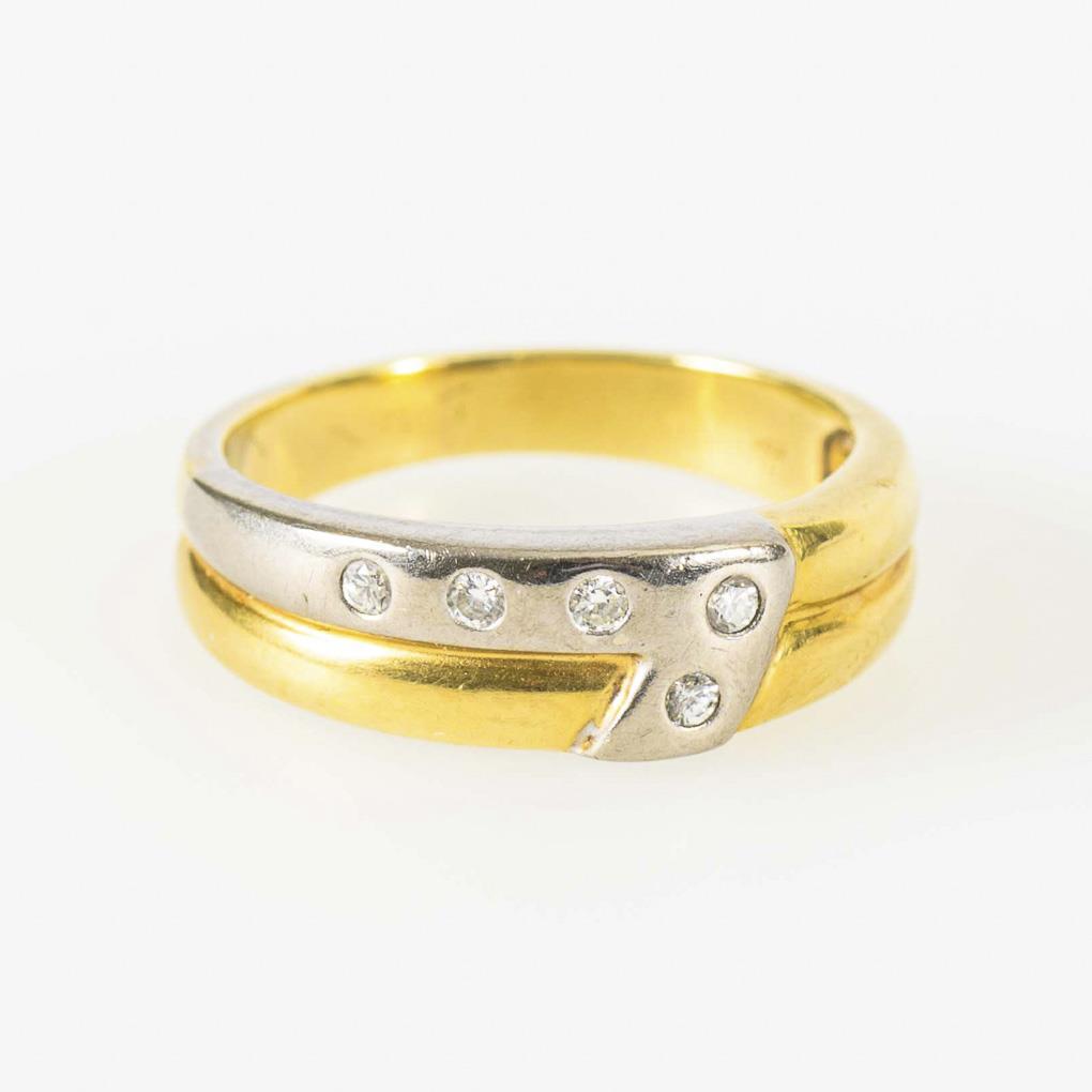 Marked yellow gold/white gold 585. Diamonds in total approx. 0.05 ct. Ring size 55. 3.9 g.
