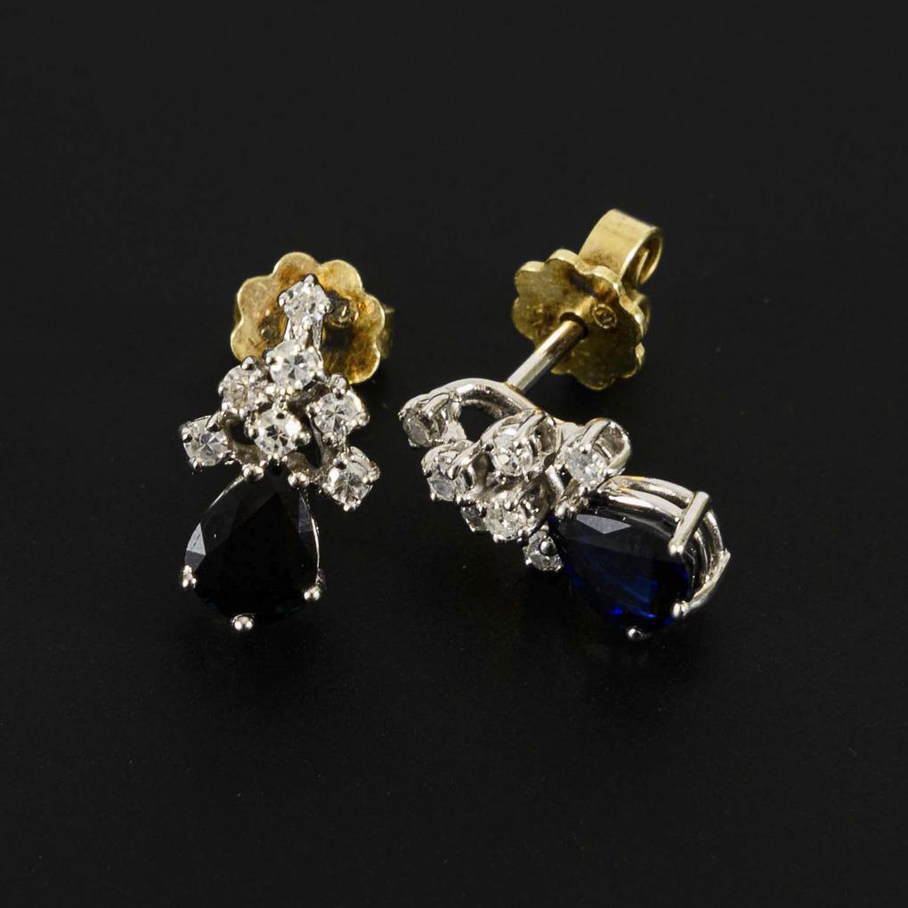 Sapphire and 7 small, chaton-set diamonds each on plug-in mechanism.
