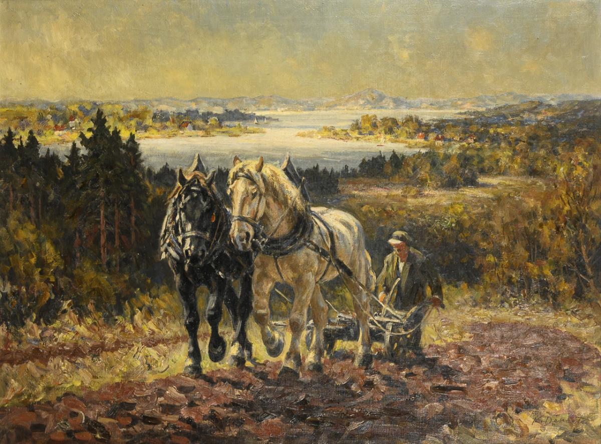 "Pflügender Bauer am Chiemsee"