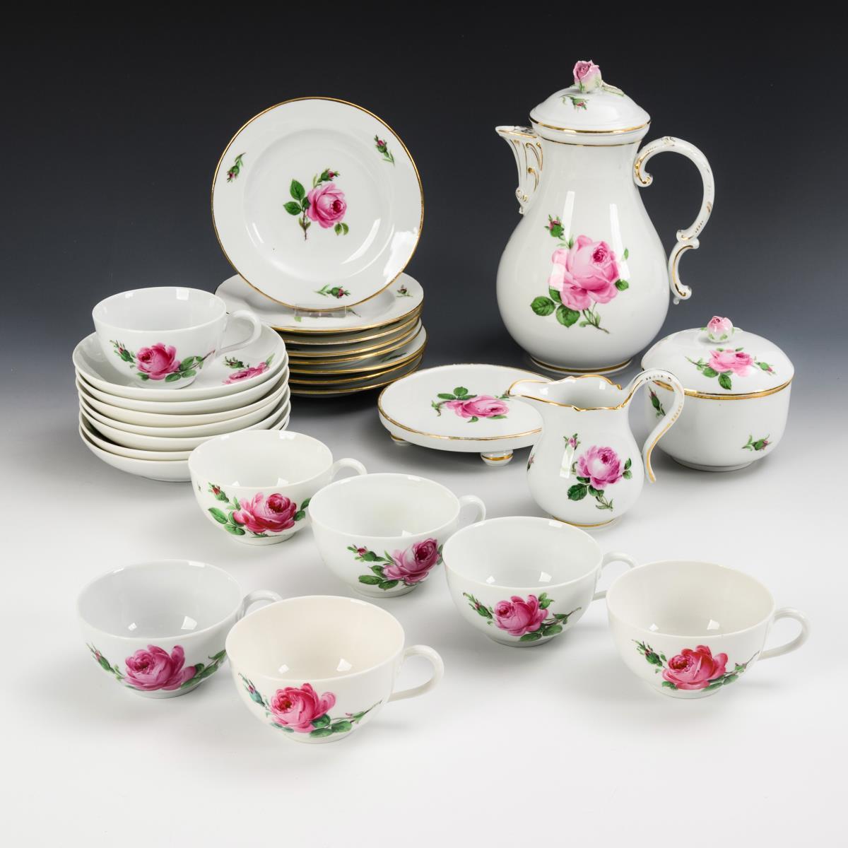 12 + 14 pieces of a coffee and tea service "Red Rose". Meissen.