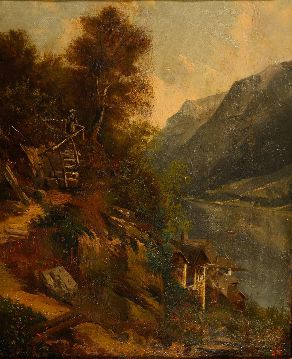 Oil/canvas. Monogrammed lower right, verso inscribed. 19th century